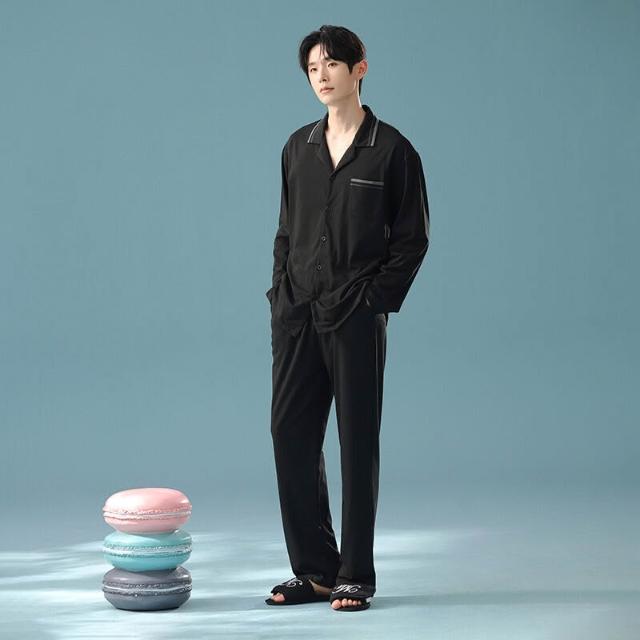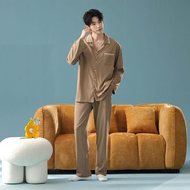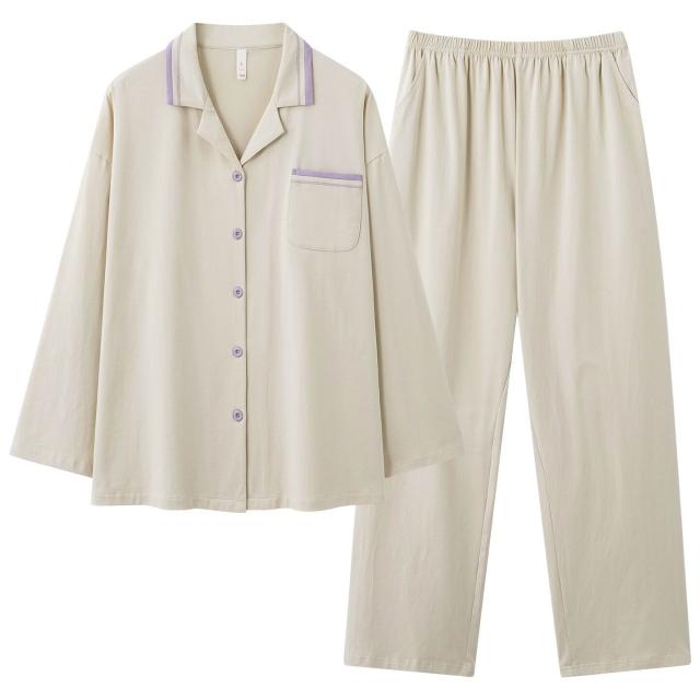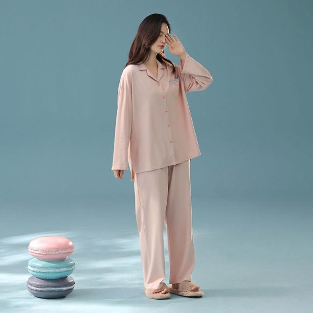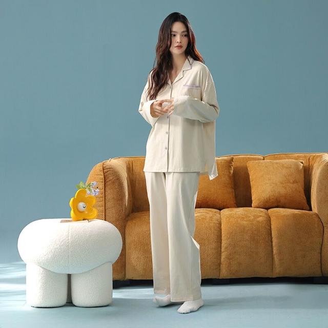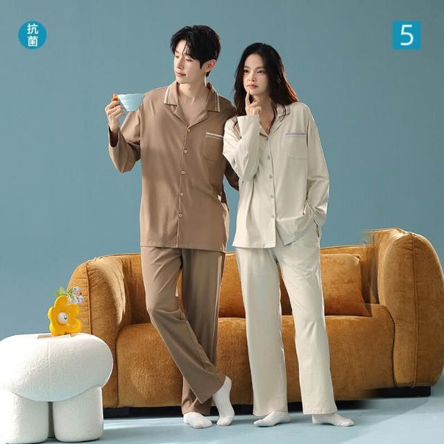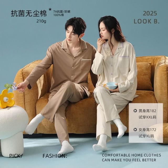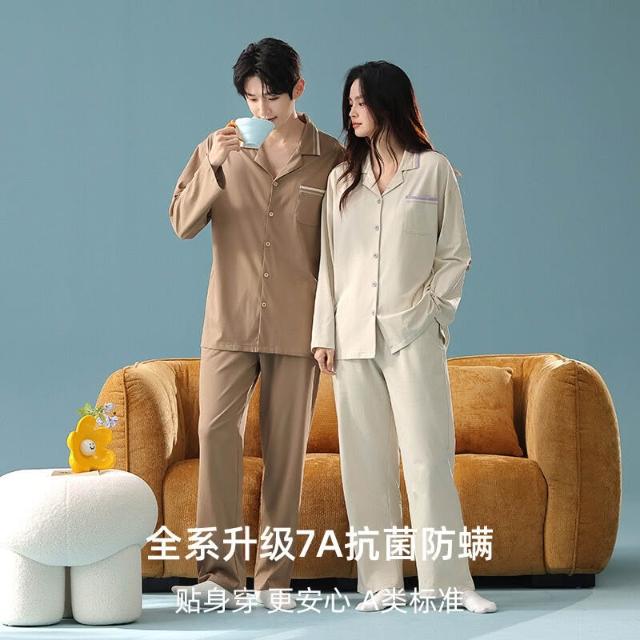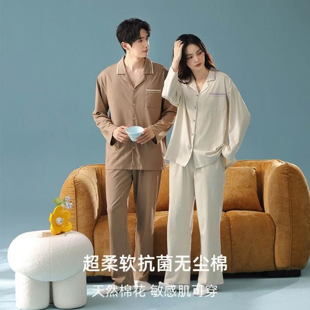 免税 抗菌新疆棉秋季新款純棉長袖情侶睡衣女士簡約高級家居服套裝