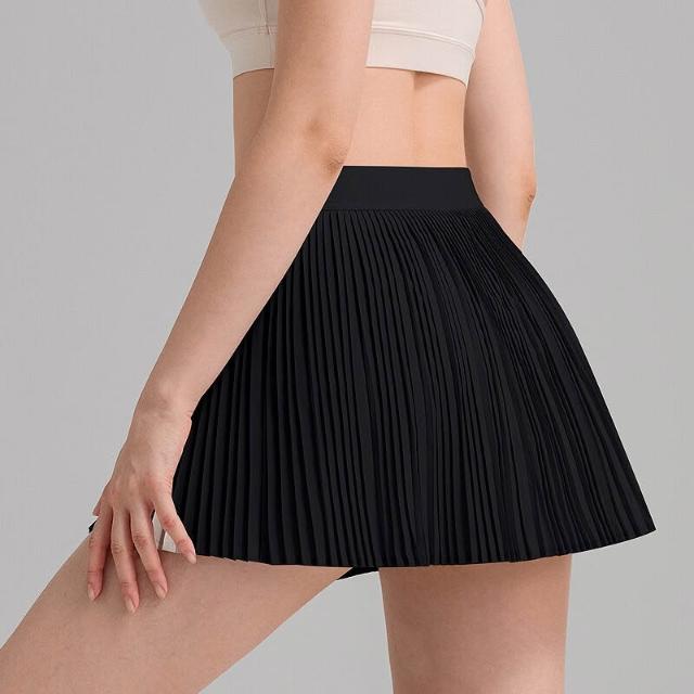 輕簡 瑜伽短裙 女運動高腰網球百褶裙 彈力修身速幹裙 lulu同款健身跑步短裙 戶外網球裙子