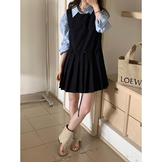 免税 miu系學院風減齡條紋無袖連衣裙女秋季2025新款韓系百褶背心裙子