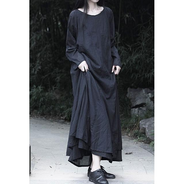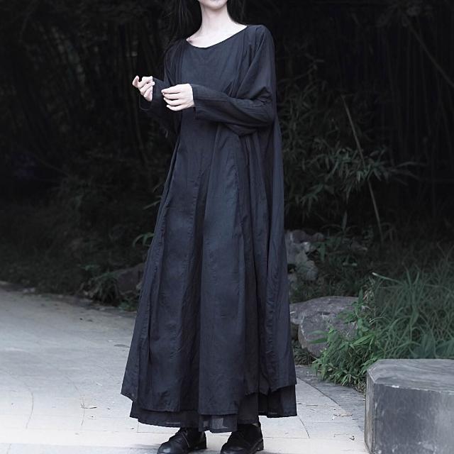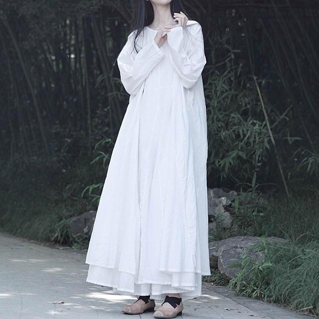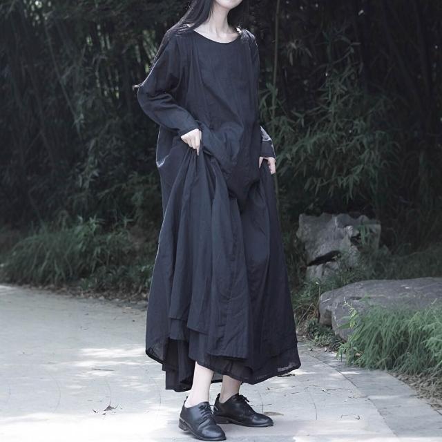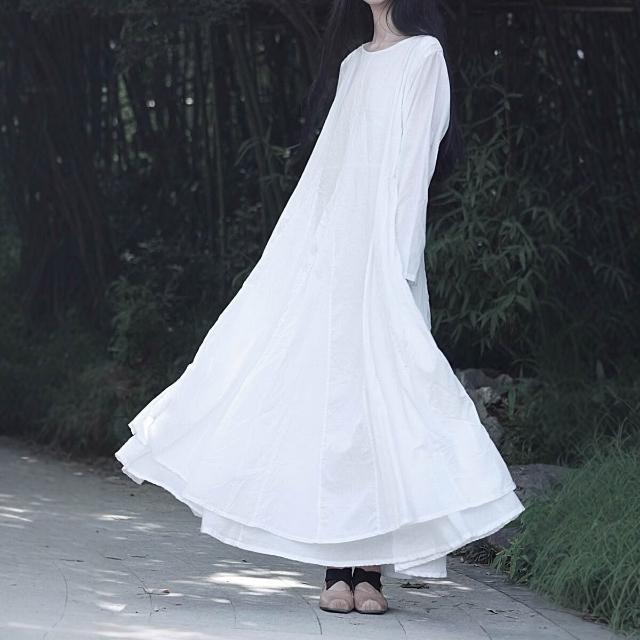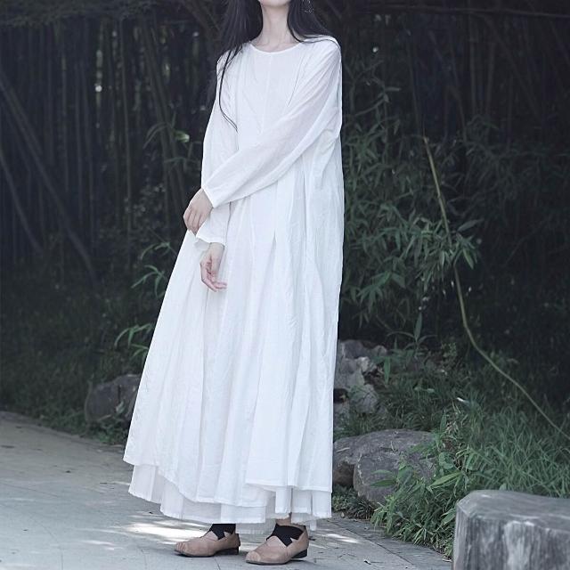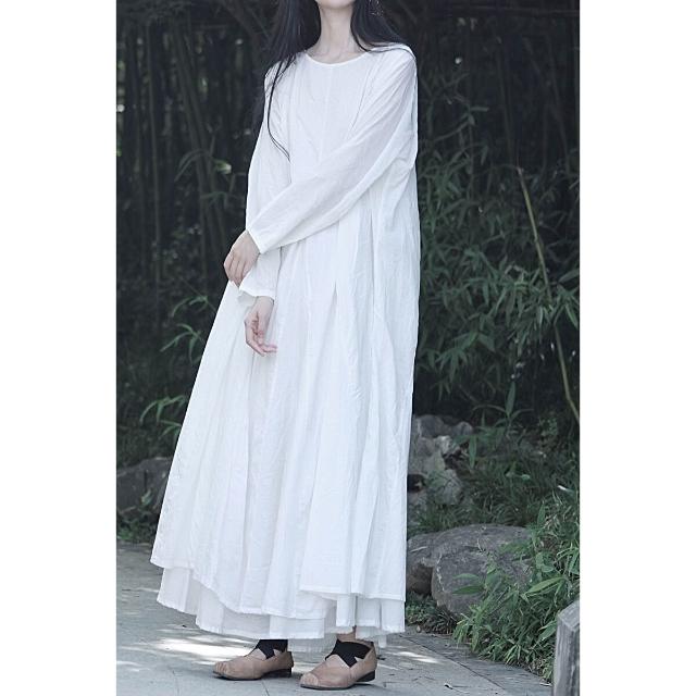 免税 大擺裙文藝風純棉風格設計感全棉雙層長袖大擺連衣裙