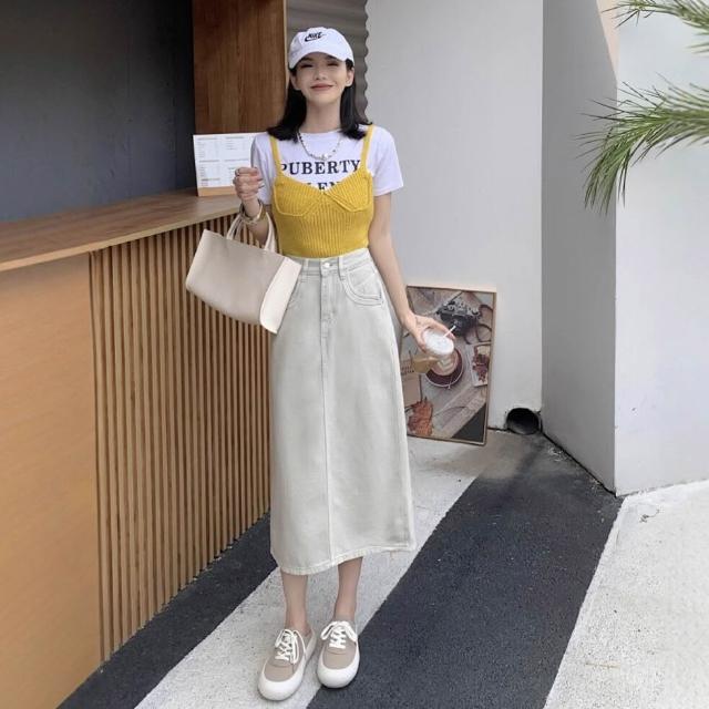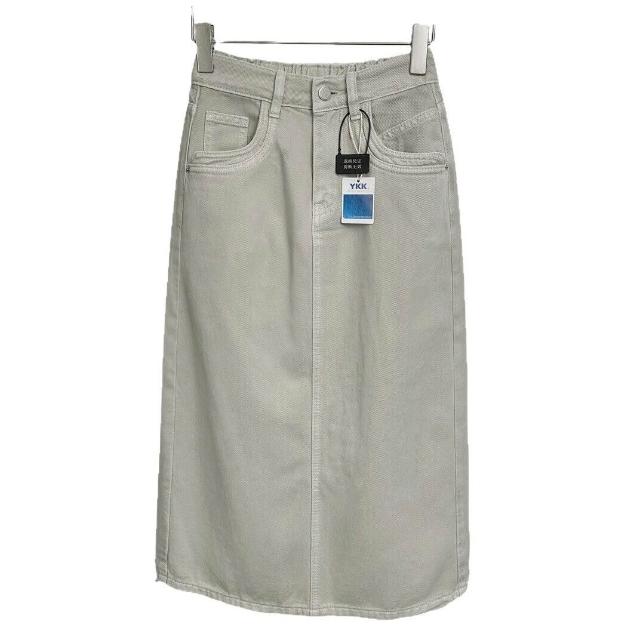 免税 高腰後開叉半身裙女2025夏高腰顯瘦顯腿長銀灰件染後松緊腰中長裙