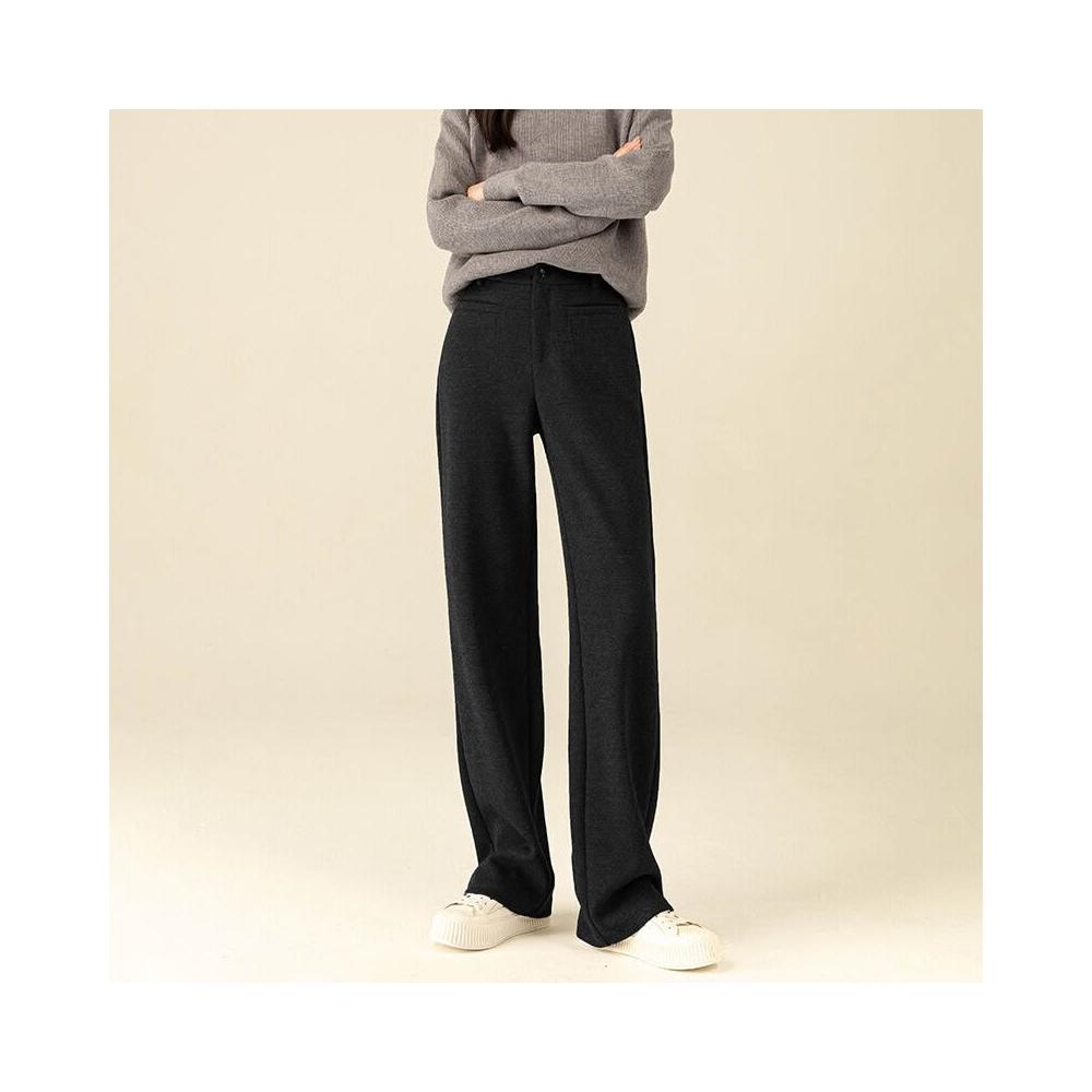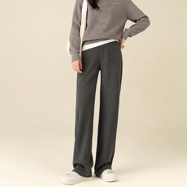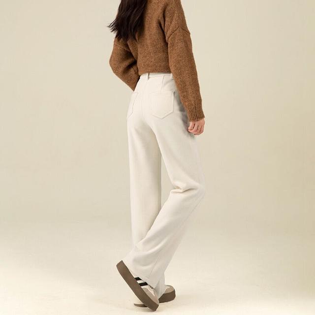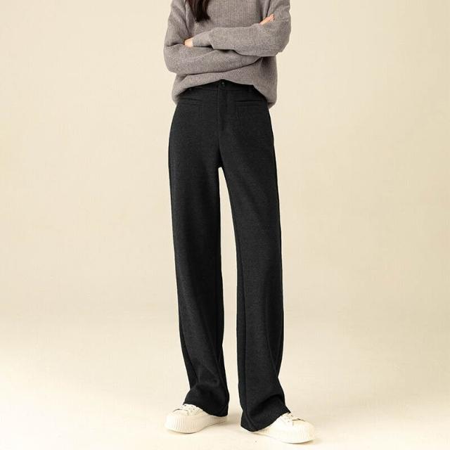 免税 鑫閣羊毛闊腿褲女秋冬高腰直筒寬松窄版休閑加絨醋酸羊絨糯米褲子