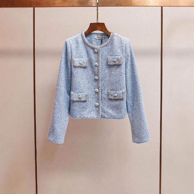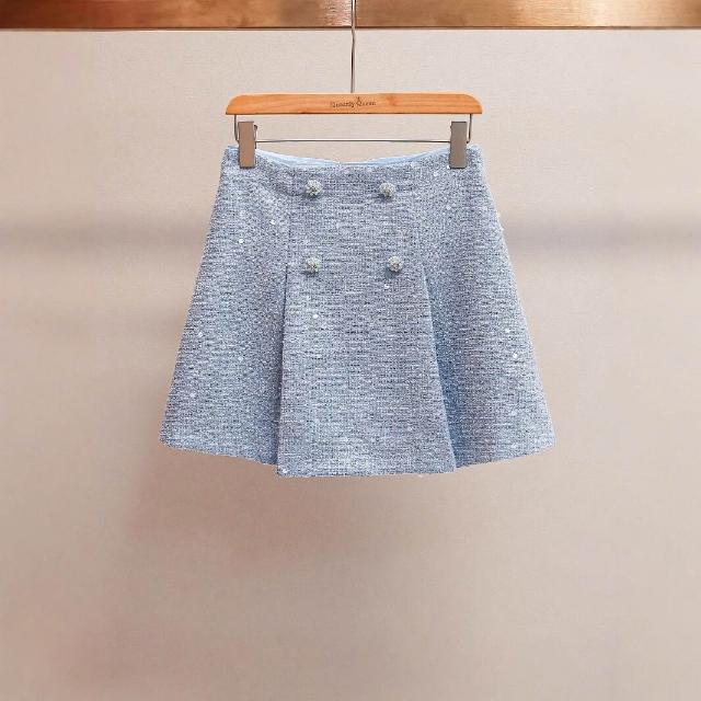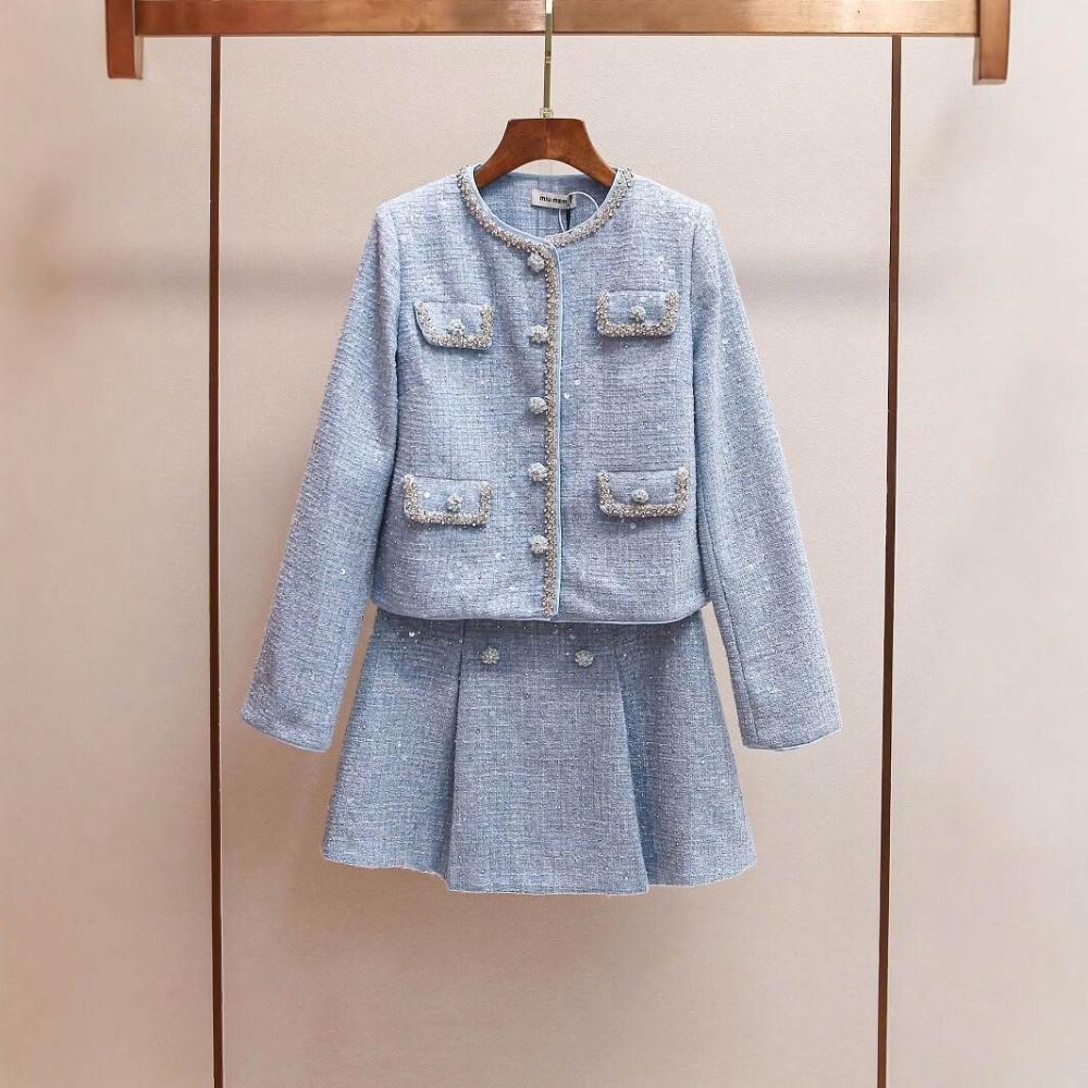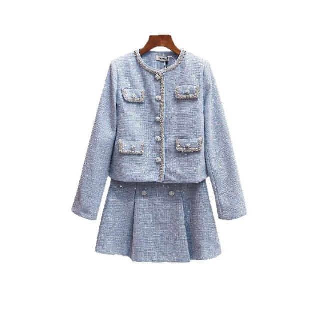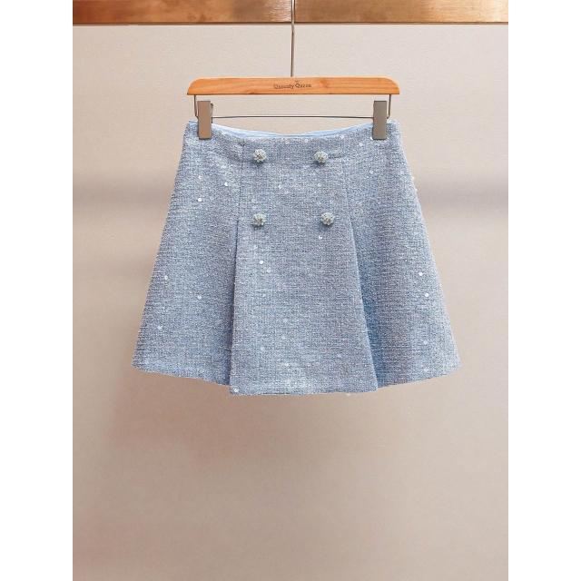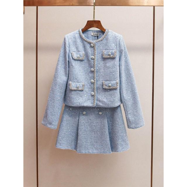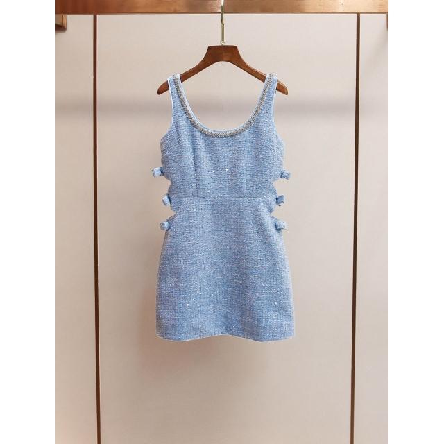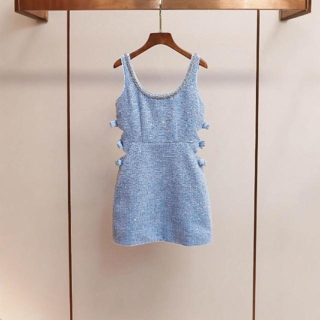 免税 SP家小香風粗花呢亮片外套+镂空背心連衣裙+包臀短裙三件套裝女