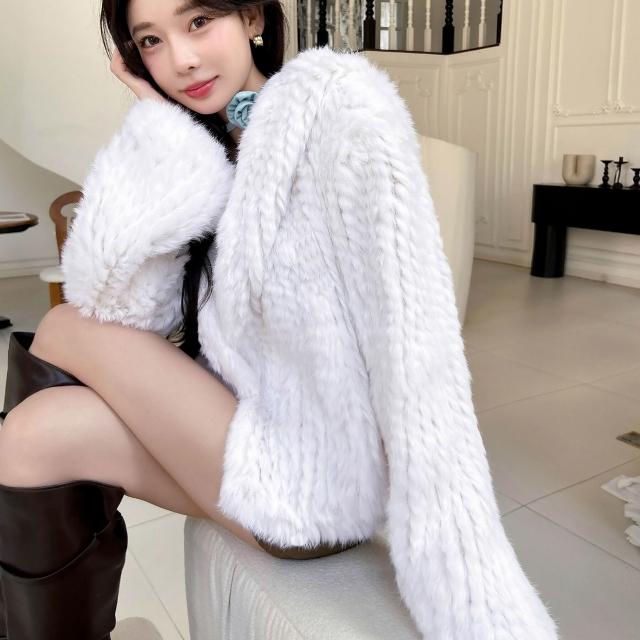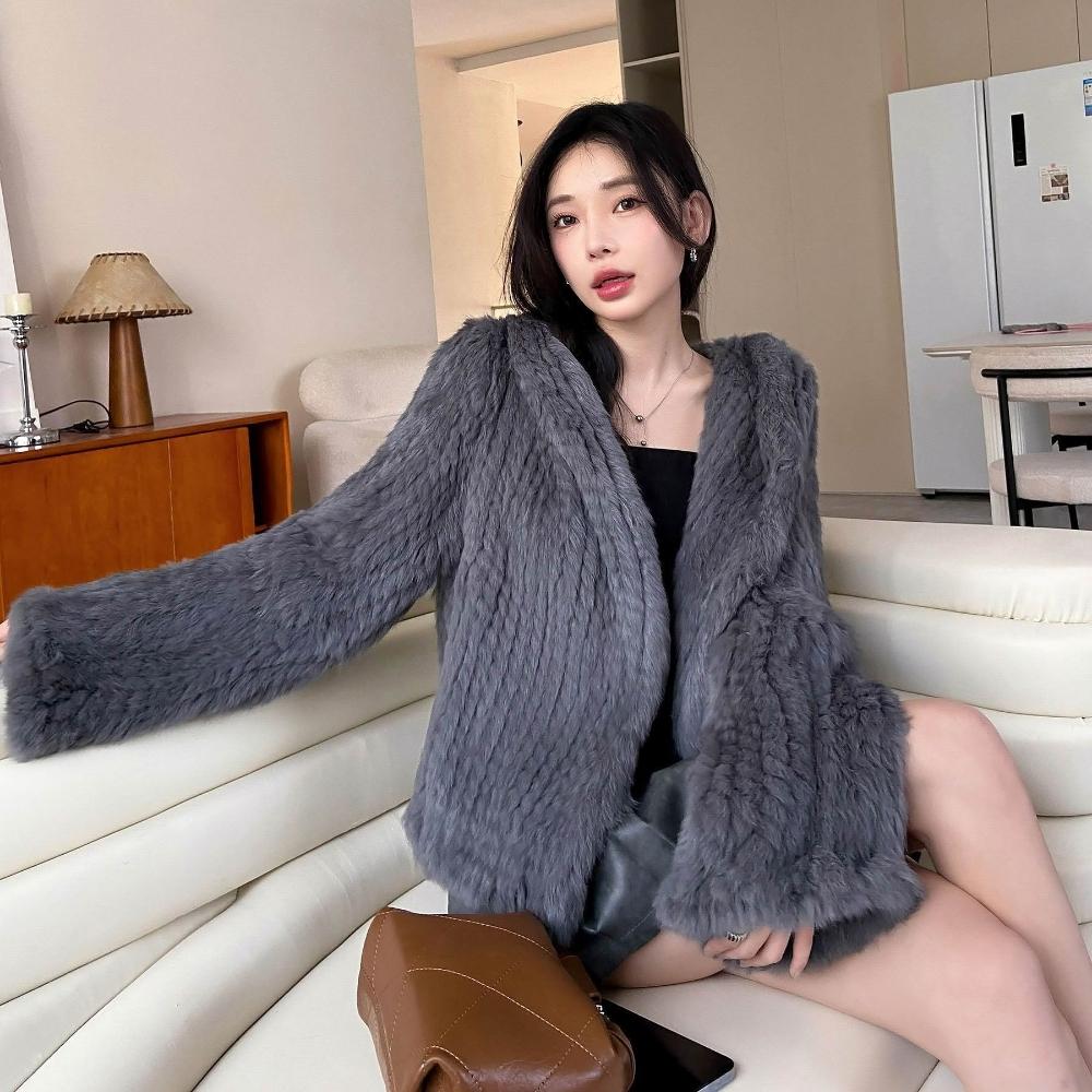 免税 真兔毛外套女秋冬季新款保暖韓版百搭短款連帽子雙面編織皮草上衣