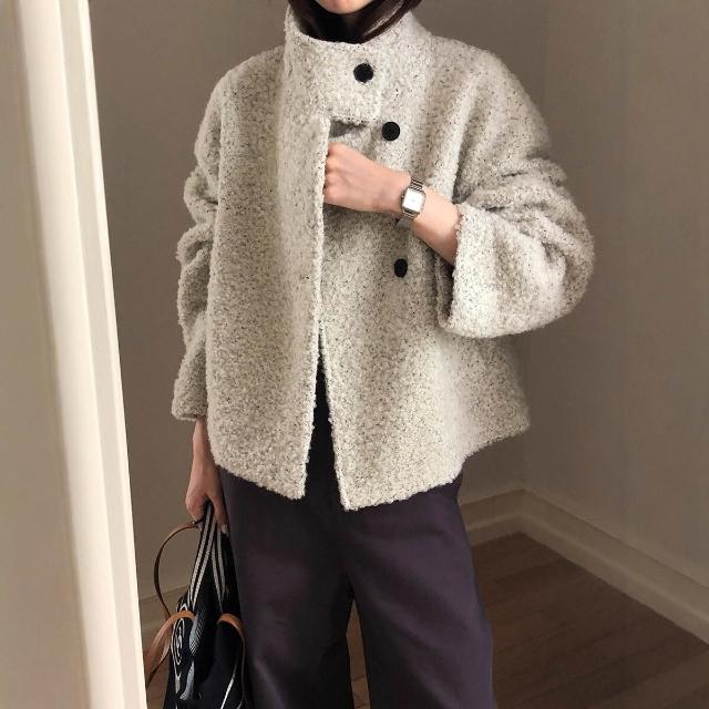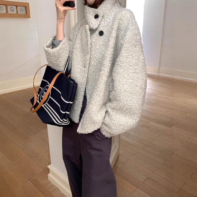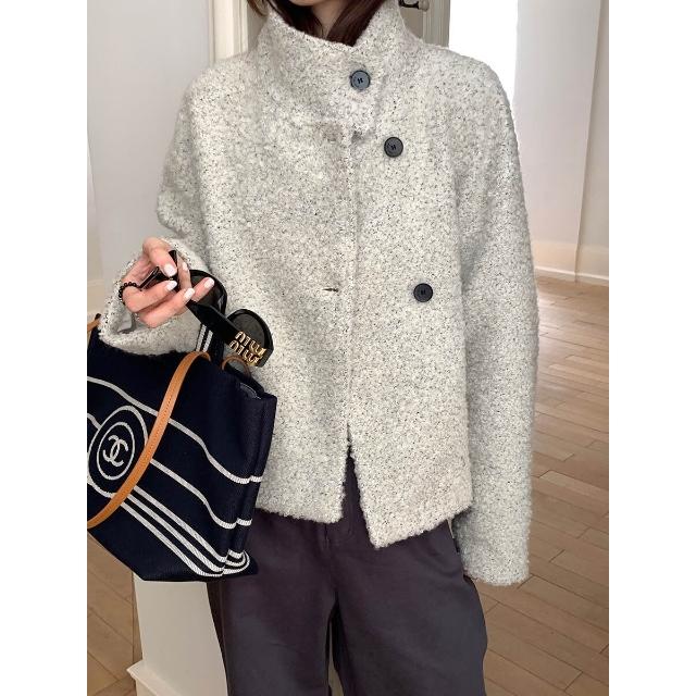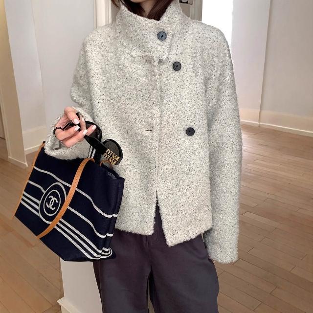 免税 煙囪領毛呢外套女2025秋冬新款韓系高級感寬松百搭羊毛呢子大衣
