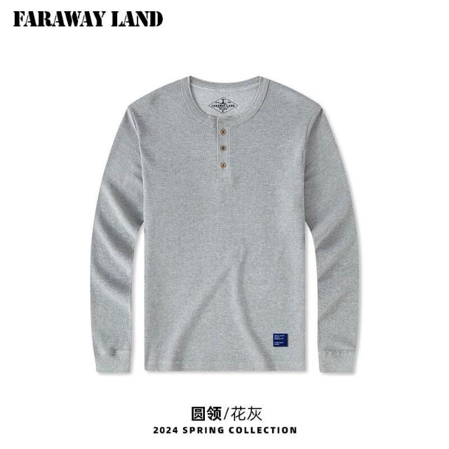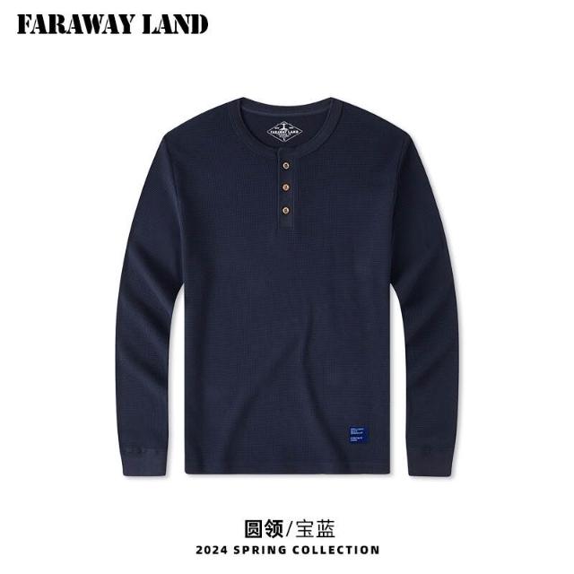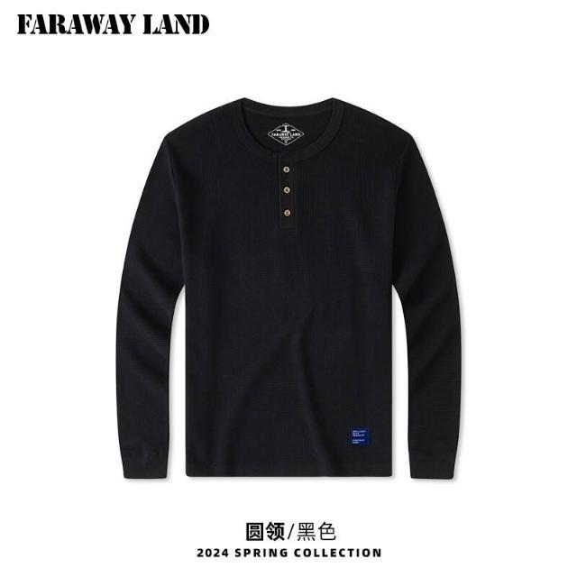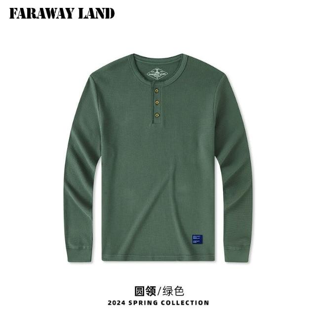 免運 熱銷🔥 亨利領打底衫男士t恤華夫格美式純色內搭男阿美咔叽衣服簡約長袖
