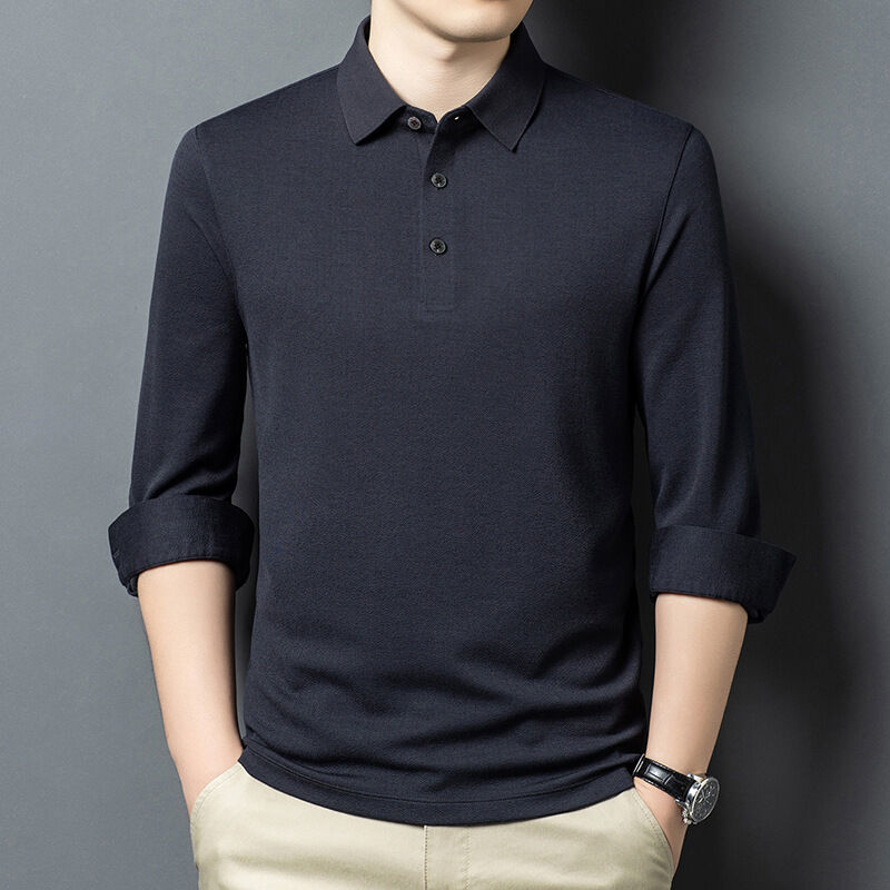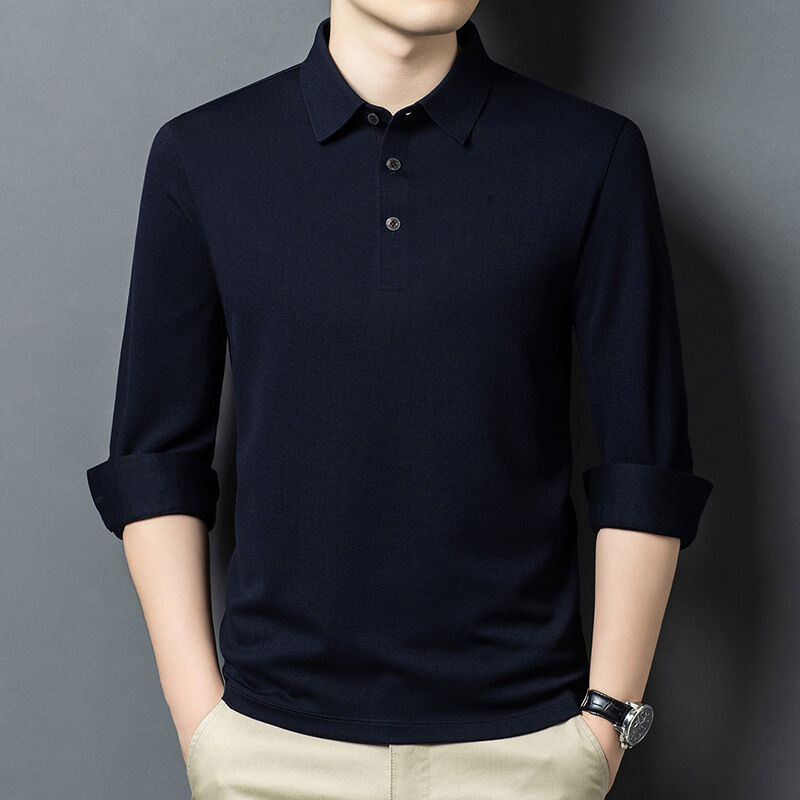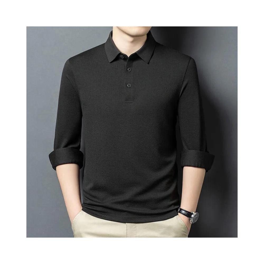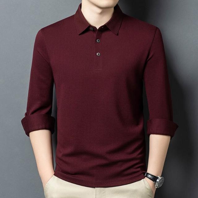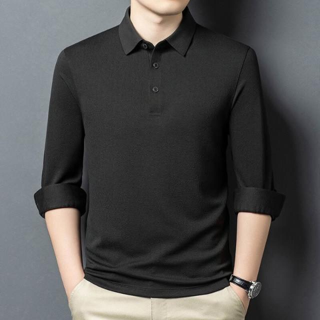 免運 免稅 熱銷🔥 含羊毛男士長袖T恤衫 秋冬新款中年商務休閑純色寬松POLO衫上衣