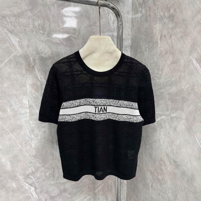 免運 免稅 熱銷🔥 高定D家高版菱格紋字母提花撞色時髦百搭微透薄款短袖針織衫T恤女
