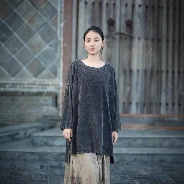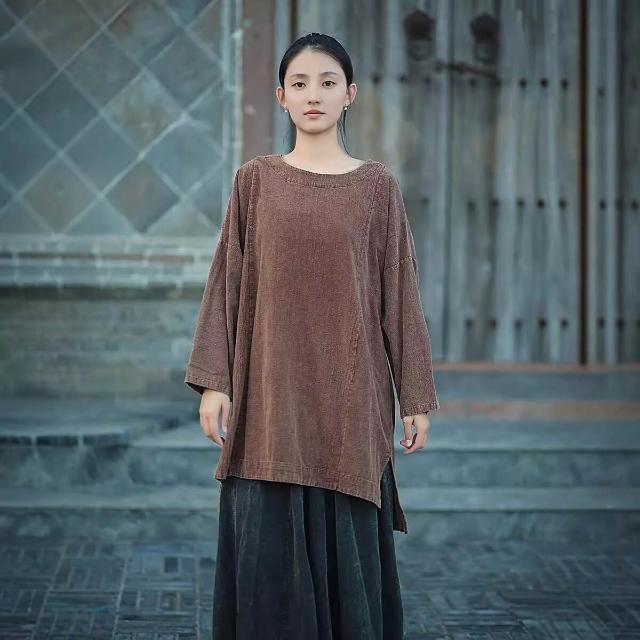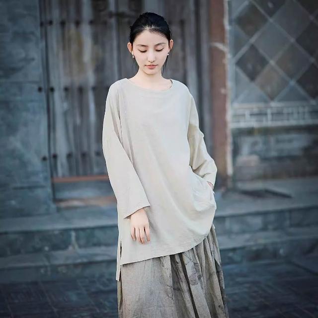免運 免稅 熱銷🔥 原創文藝套頭炒色設計棉麻復古小衫寬松落肩套頭衫