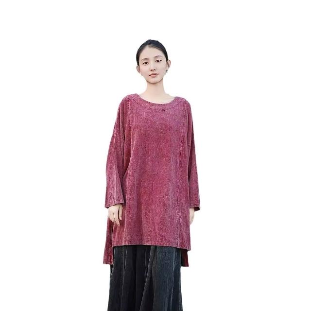 免運 免稅 熱銷🔥 原創文藝套頭炒色設計棉麻復古小衫寬松落肩套頭衫