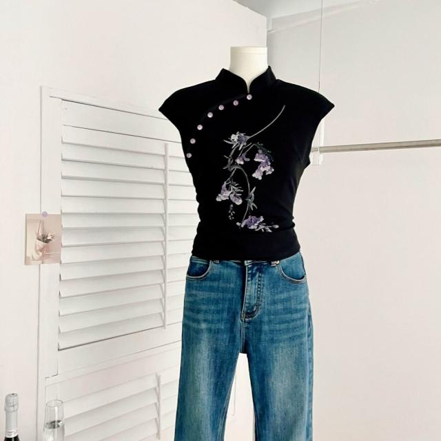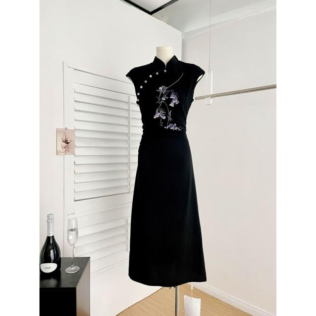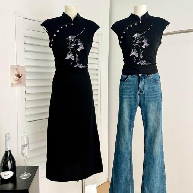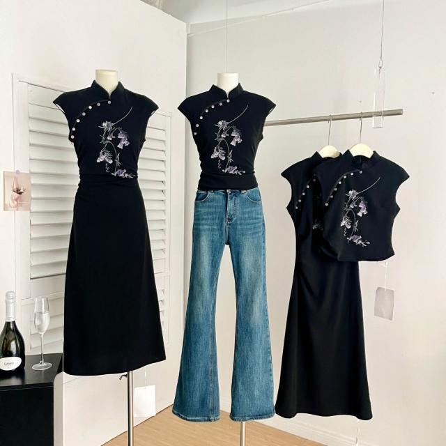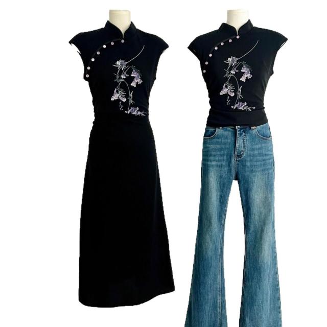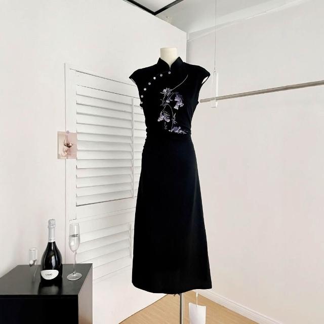 免運 免稅 熱銷🔥 『欣幸』鹭青一佩蘭新中式旗袍連衣裙女春夏國風印花刺繡小衫上衣