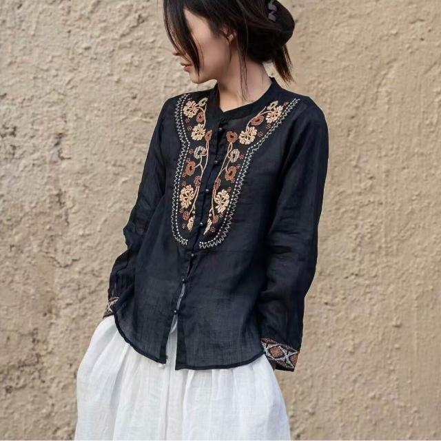 免運 免稅 熱銷🔥 娜美2025年春季新品刺繡長袖襯衫上衣中式日常時尚百搭小衫女裝