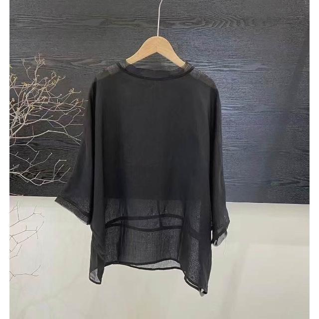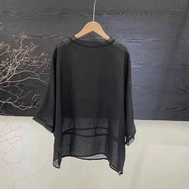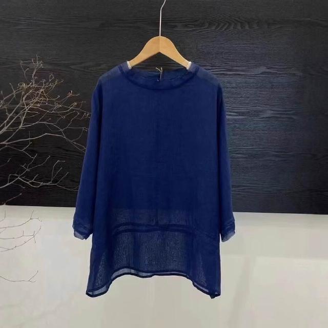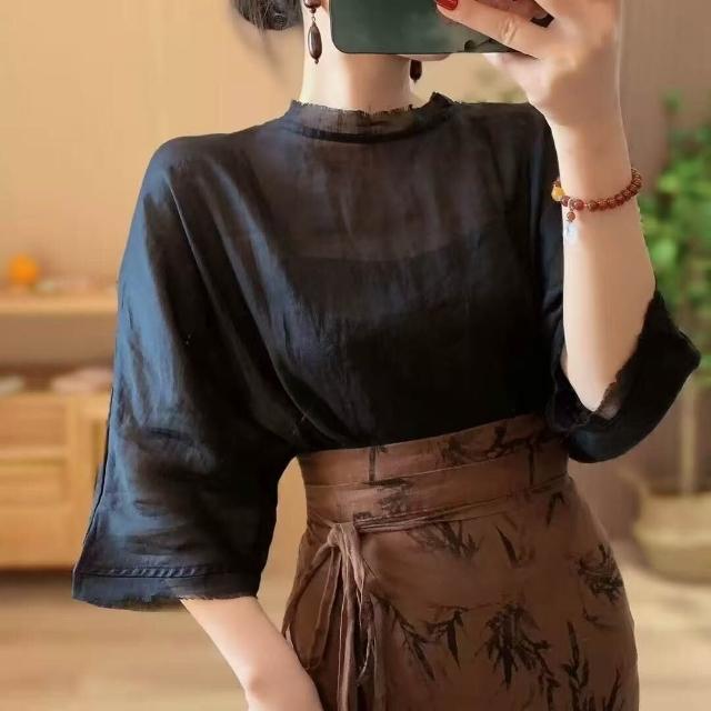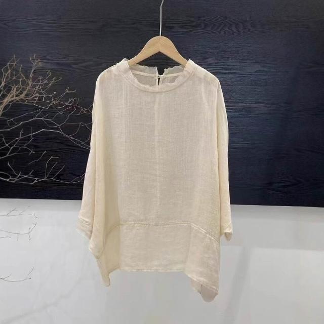 免運 免稅 熱銷🔥 新款原創春夏新款文藝復古毛邊領慵懶寬松顯瘦苎麻小衫上衣女