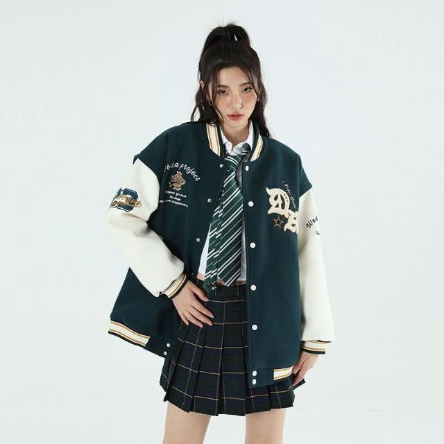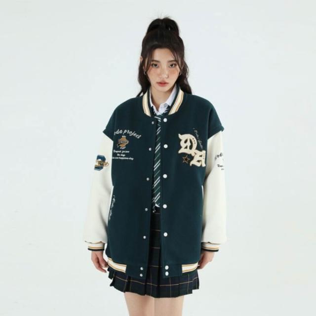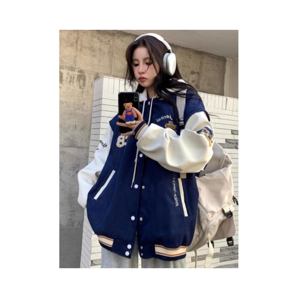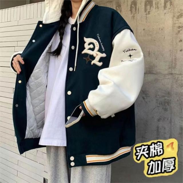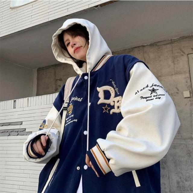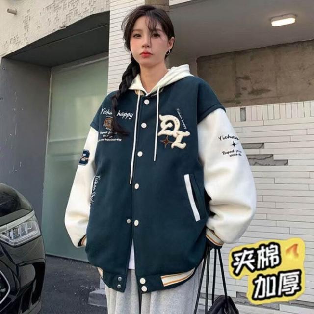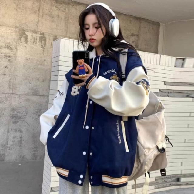 免稅 免運 熱銷🔥 美式復古棒球服外套女2024年新款秋冬季oversize學生寬松連帽夾克