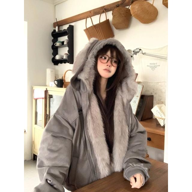 免稅 免運 熱銷🔥 TUDOU土豆貓甜酷連帽座山雕外套女寬松加厚2025新款冬季棉衣棉服