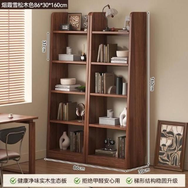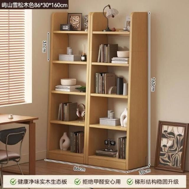 輕簡 梯形書架展示櫃落地置物架客廳一體靠墻櫃子家用臥室多層實木書櫃 fa8 3e9