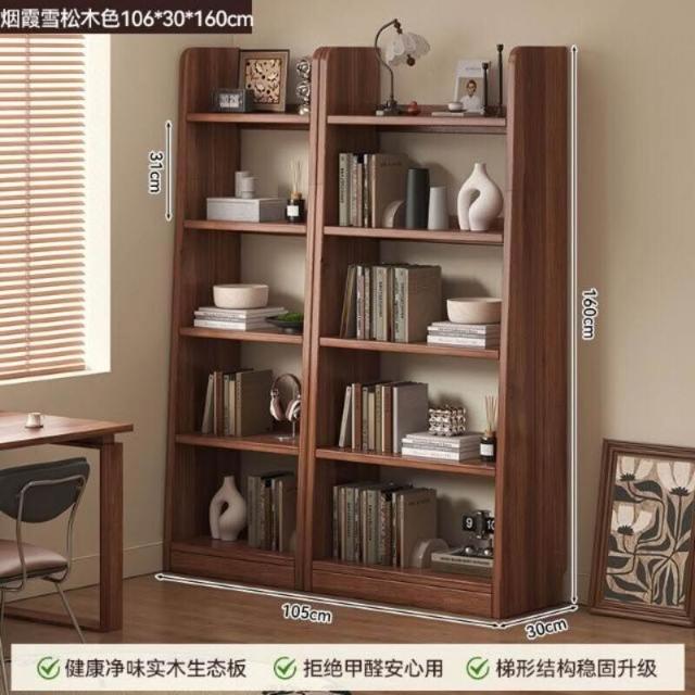 輕簡 梯形書架展示櫃落地置物架客廳一體靠墻櫃子家用臥室多層實木書櫃 fa8 3e9