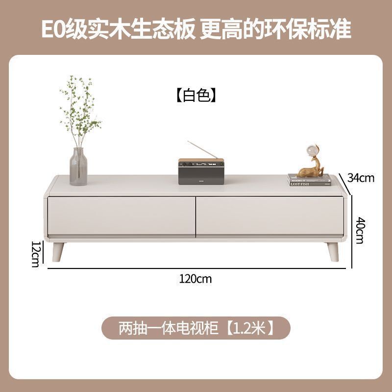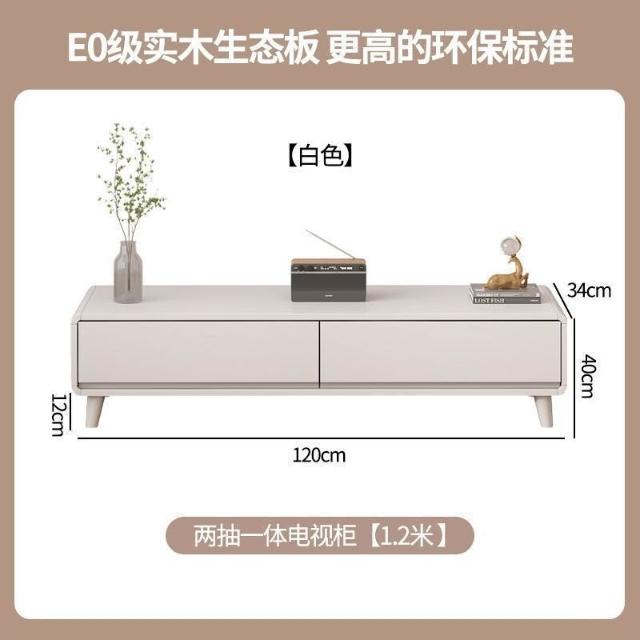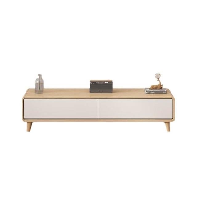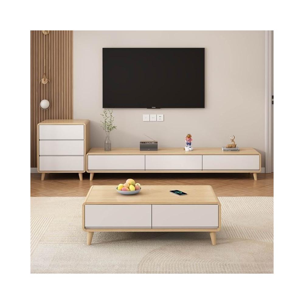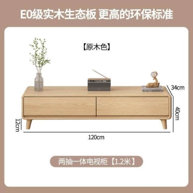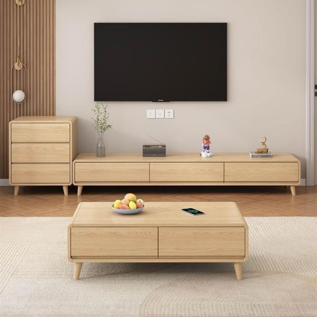 輕簡 原木風實木電視櫃茶幾組合現代簡約客廳家用小戶型落地式櫃奶油風 8ca 7e9