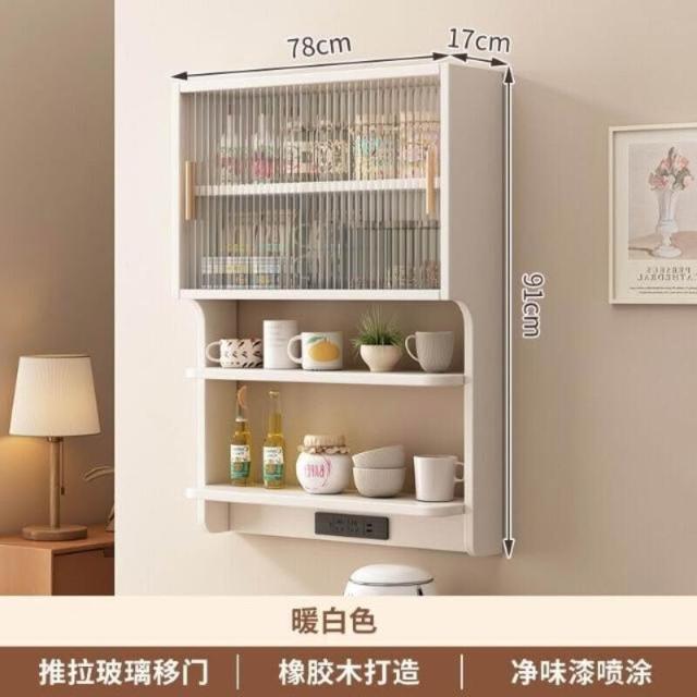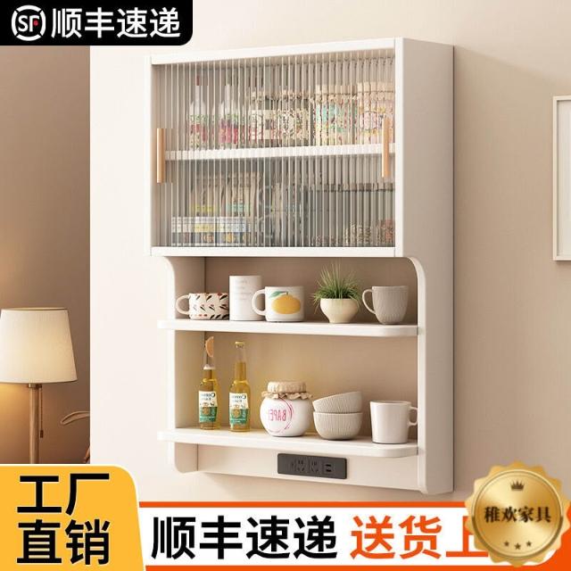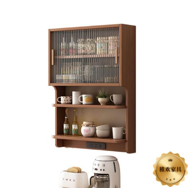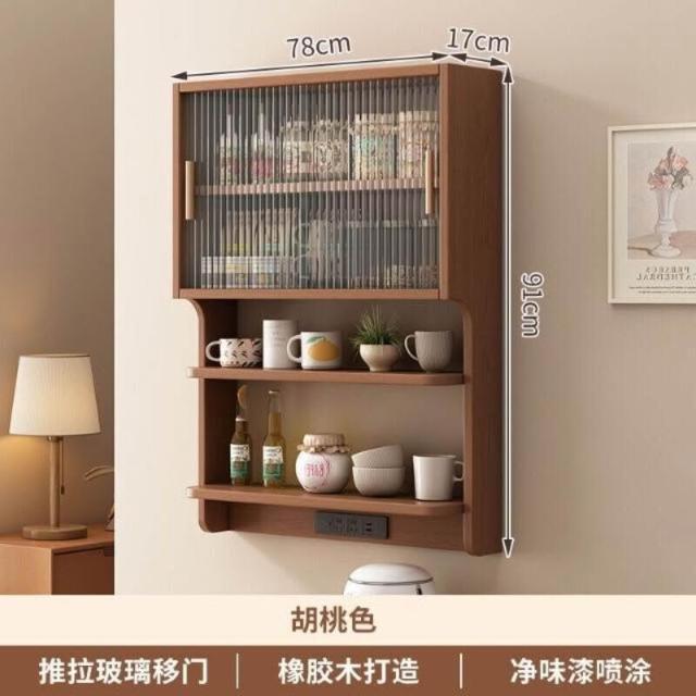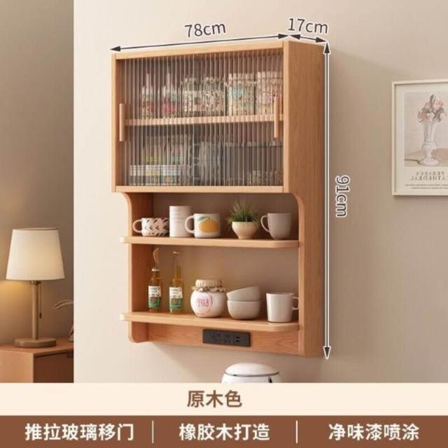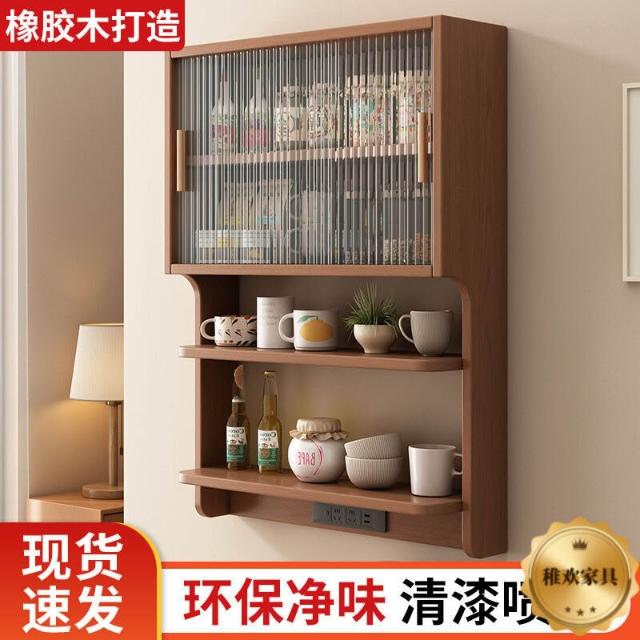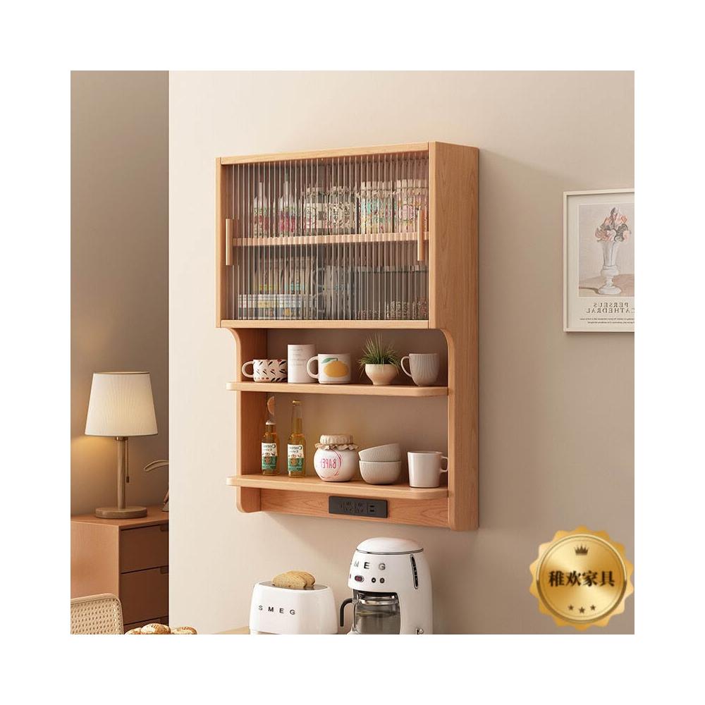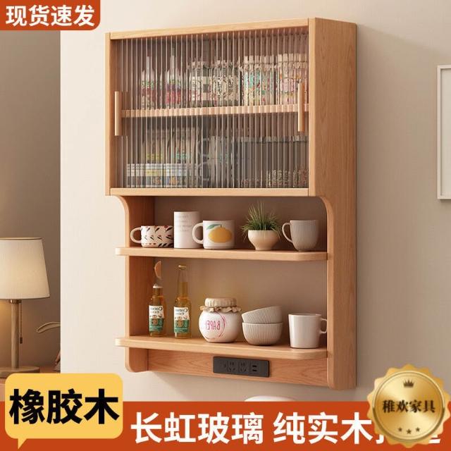 輕簡 實木懸浮餐邊櫃橡膠木壁掛式餐廳墻上置物架北歐風餐邊吊櫃儲物櫃 9da