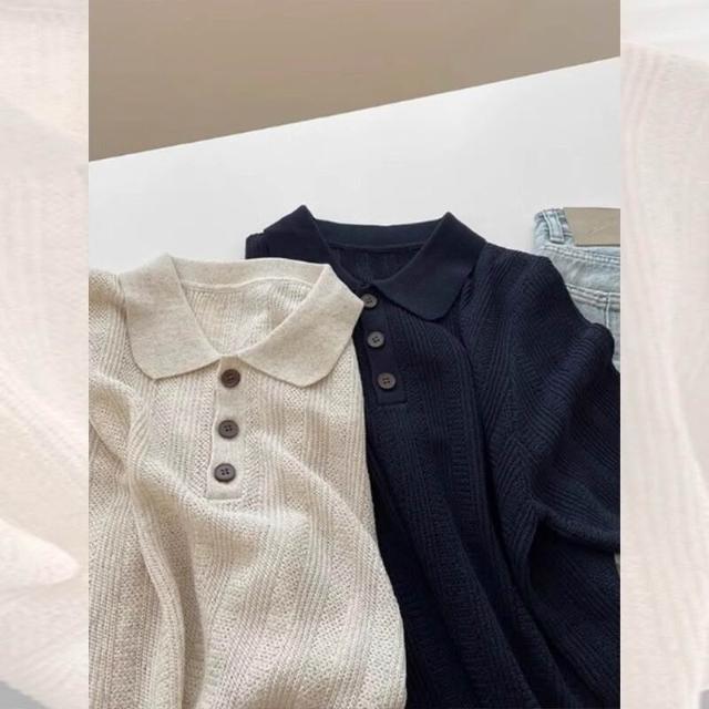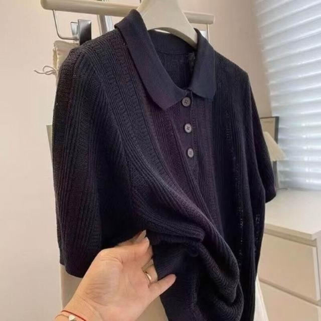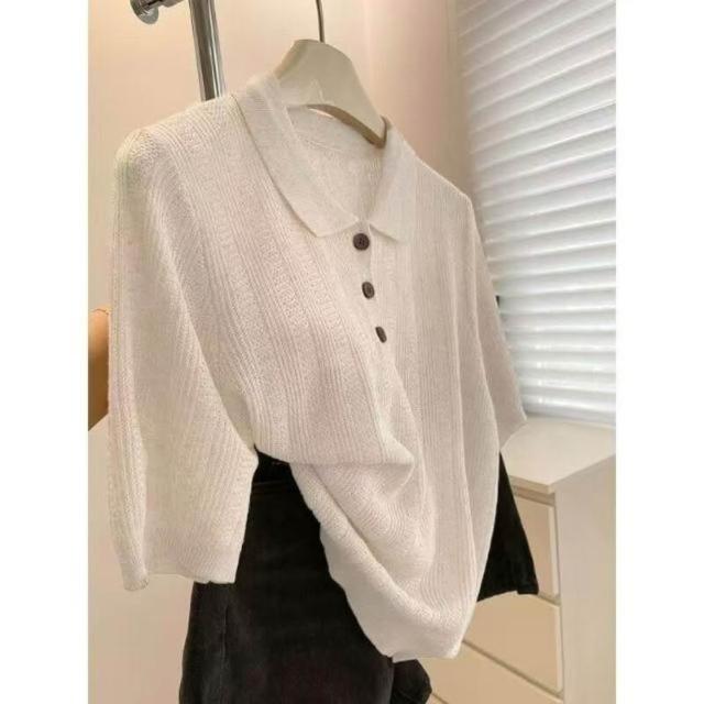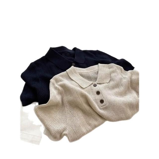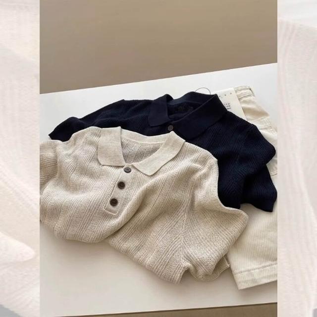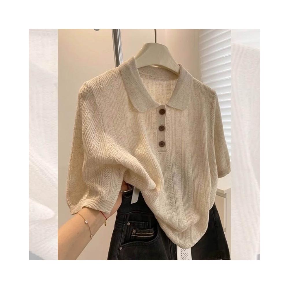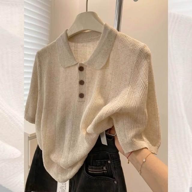 輕簡 高級感燕麥色Polo領正肩針織冰絲短袖t恤女夏寬松單穿好看的上衣 57e 2c0