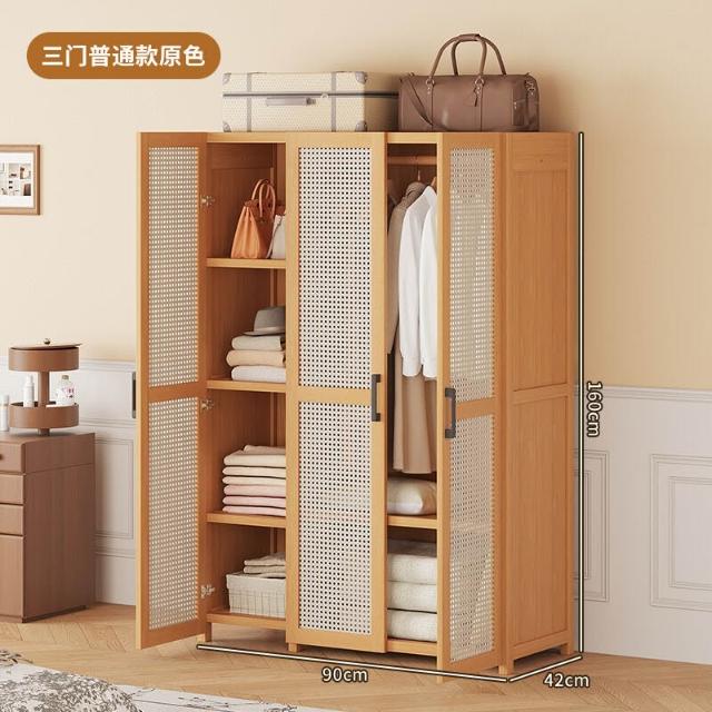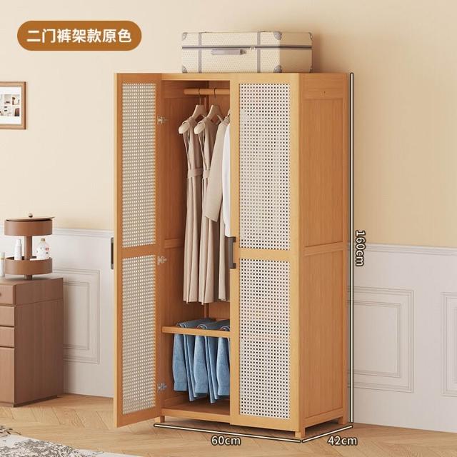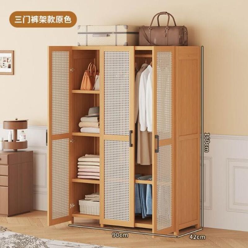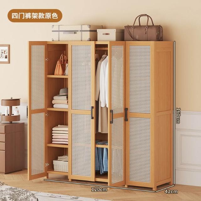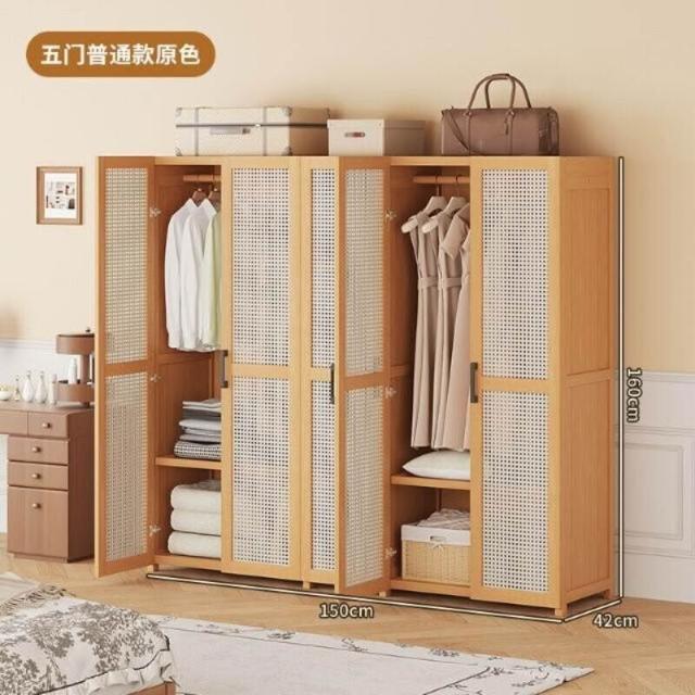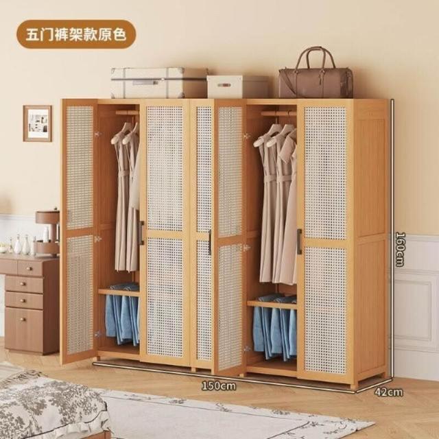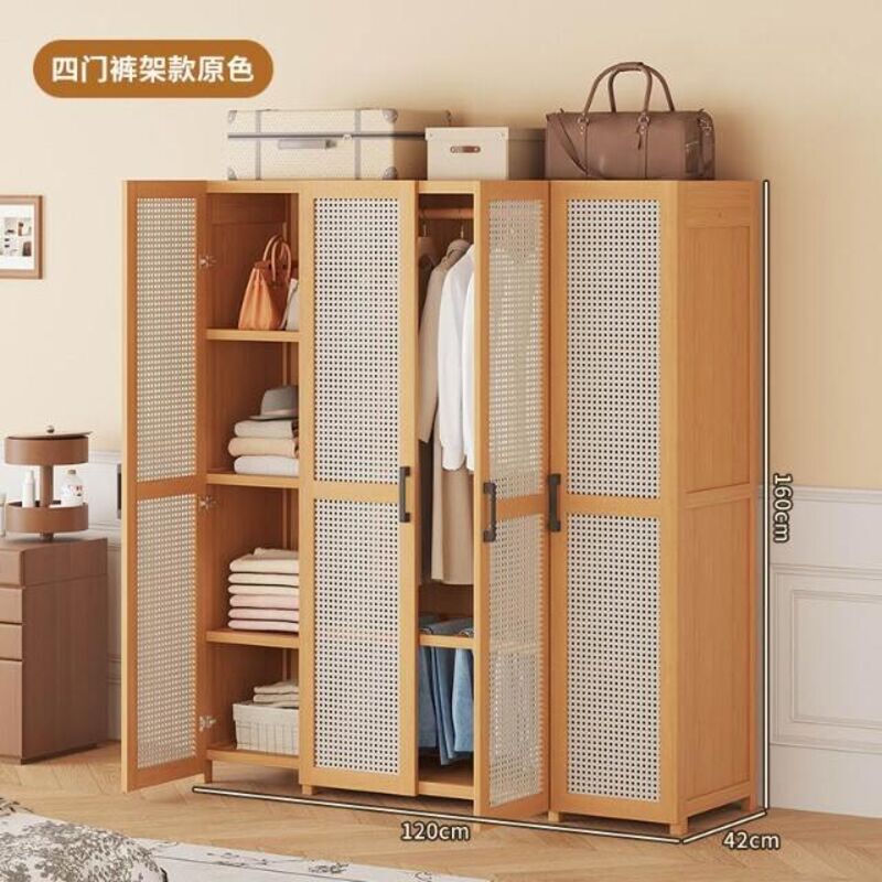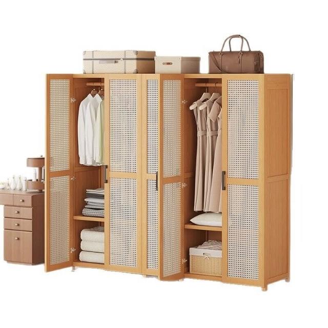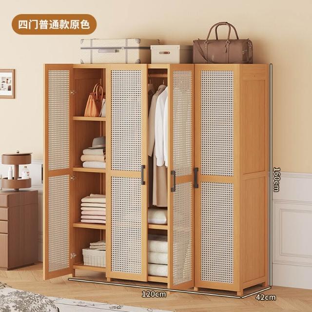 輕簡 日式藤編實木衣櫃 簡約現代大容量臥室儲物櫃收納衣櫥 f18 156