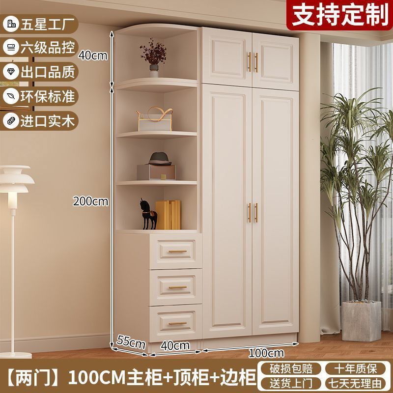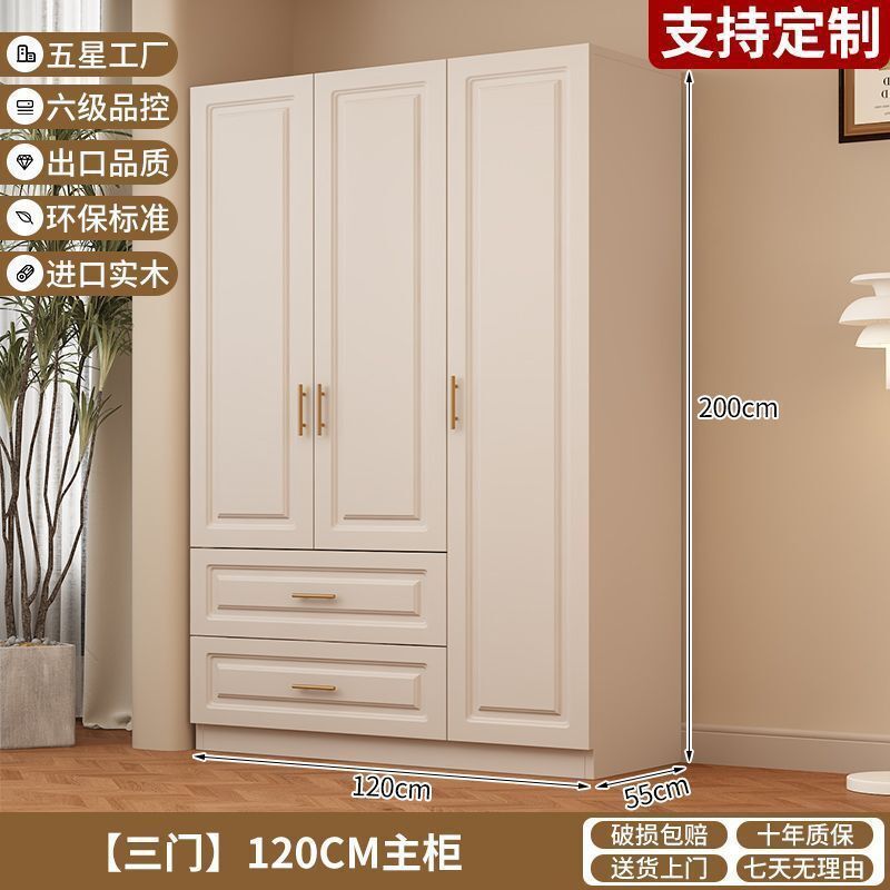 輕簡 實木衣櫃臥室家用兒童大衣櫃簡易出租房奶油風新款客廳櫃子掛衣櫥 fc6