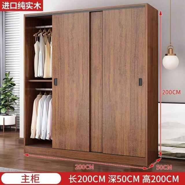 輕簡 全實木推拉門衣櫃現代簡約出租房用小戶型簡易家用臥室宿舍儲物櫃 0fe