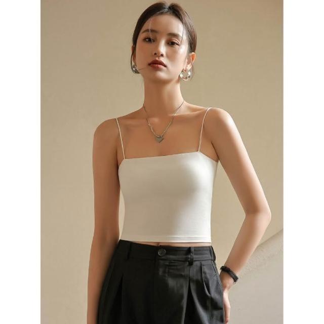 輕簡 美背吊帶背心女夏季內搭抹胸打底網紅爆款白色帶胸墊外穿一體上衣 513 91b