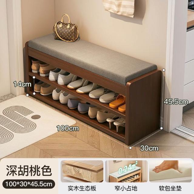 輕簡 入戶換鞋凳門口家用一體實木進門鞋櫃窄長條穿鞋凳可坐置物架鞋架 023 b50