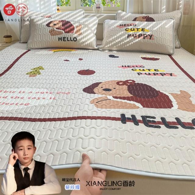輕簡 夏季冰絲乳膠涼席三件套母嬰A類可水洗夏涼床墊兒童宿舍床單床笠 5f6 ccf