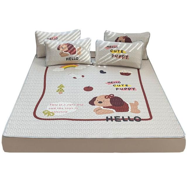 輕簡 夏季冰絲乳膠涼席三件套母嬰A類可水洗夏涼床墊兒童宿舍床單床笠 5f6 ccf