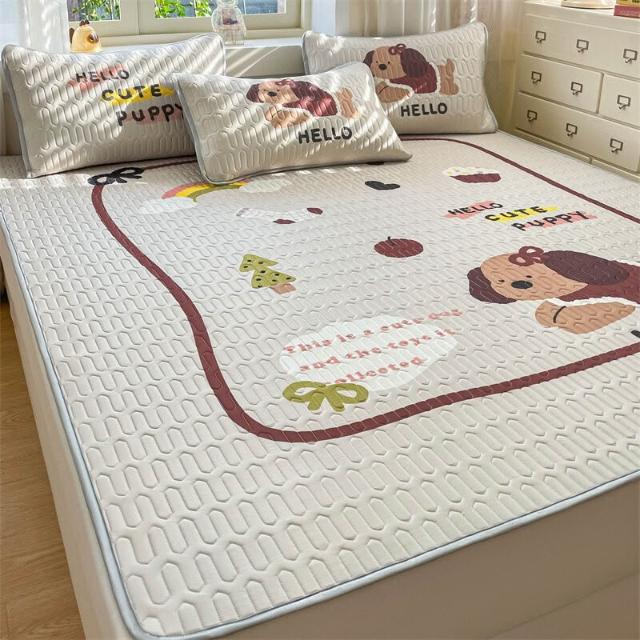輕簡 夏季冰絲乳膠涼席三件套母嬰A類可水洗夏涼床墊兒童宿舍床單床笠 5f6 ccf