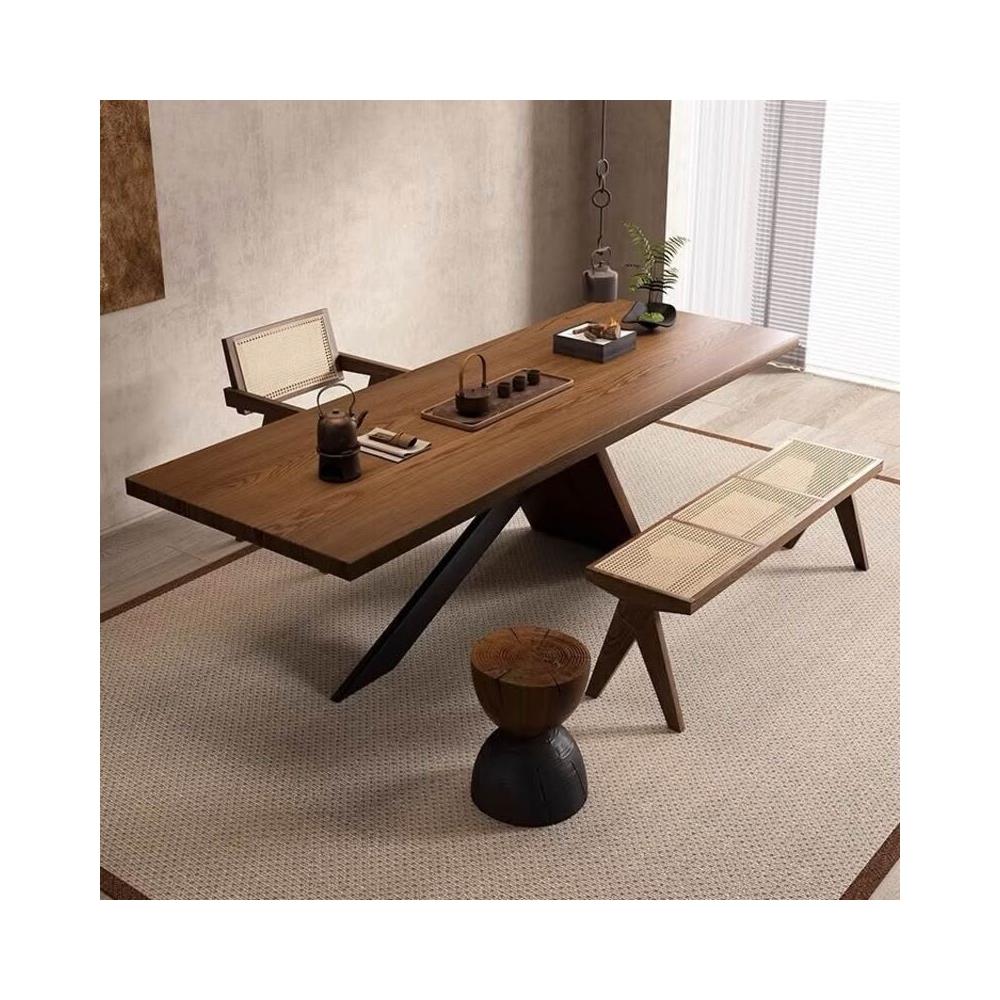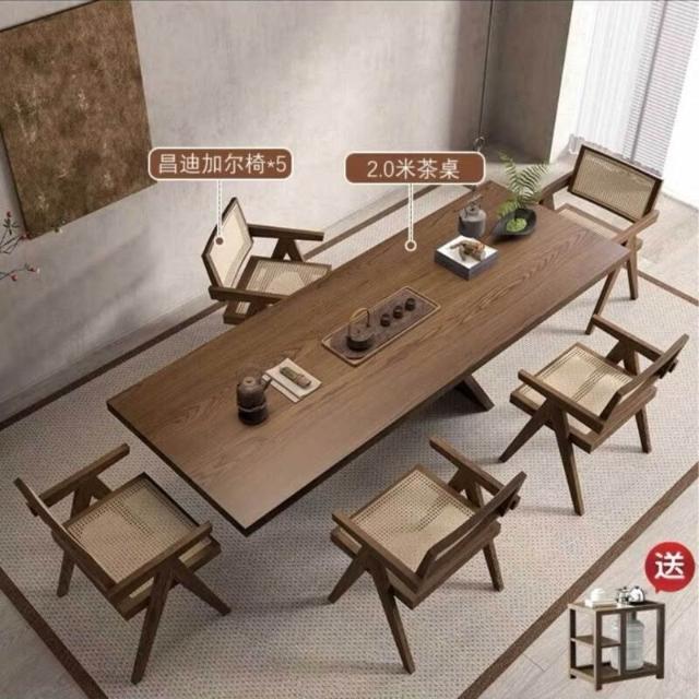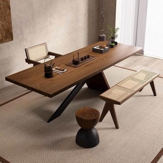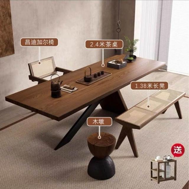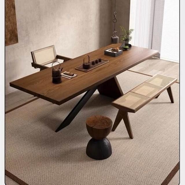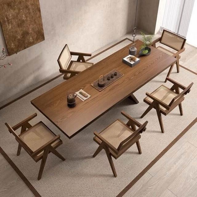 輕簡 實木茶桌餐桌兩用老板辦公桌茶桌一體設計師款茶桌原木大板泡茶桌 625