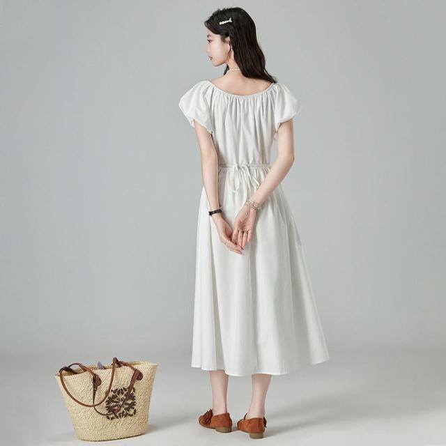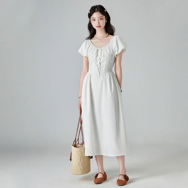 輕簡 法式溫柔風白色連衣裙夏季2026夏季新款初戀感小白裙甜美氣質長裙 890