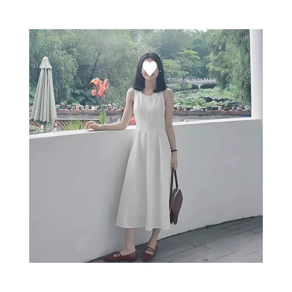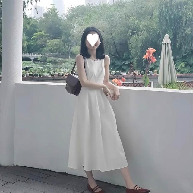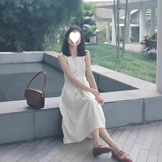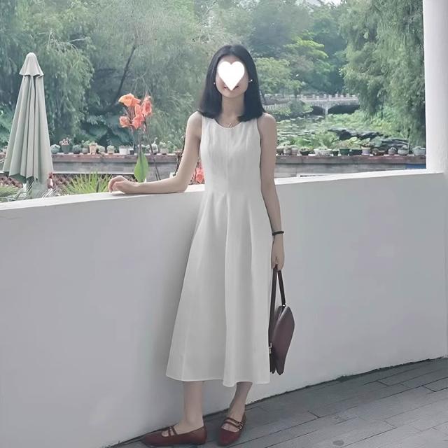 輕簡 感法式白色裙子 無袖背心連衣裙 女2026夏季新款收腰小白裙 時尚氣質背心裙insi 31a