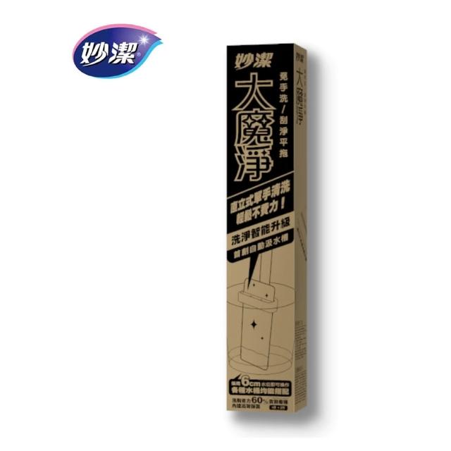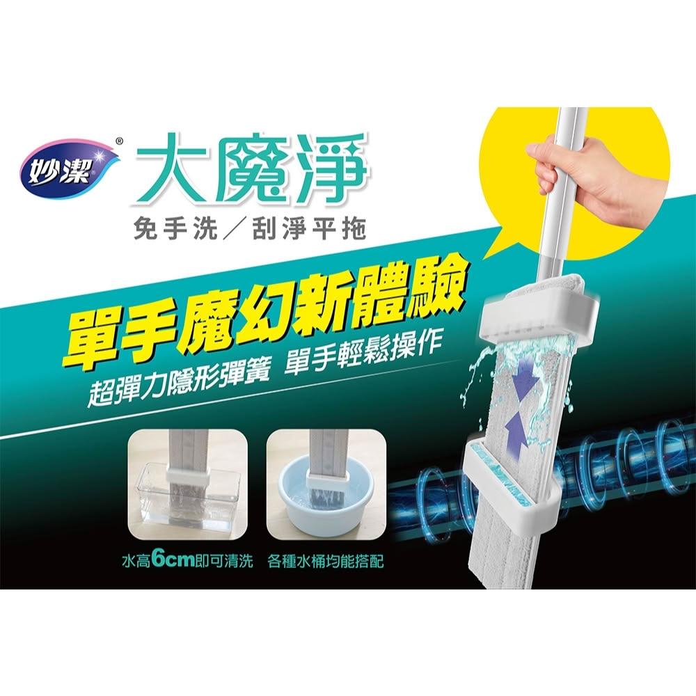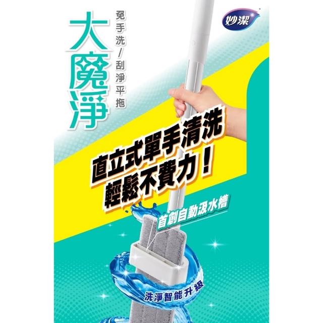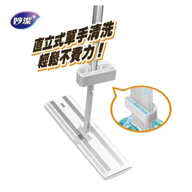 妙潔大魔淨免手洗刮淨平拖超值組(1桿2布)|各種水桶均能搭配僅需6公分水位|乾溼2用|Holdmego