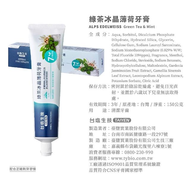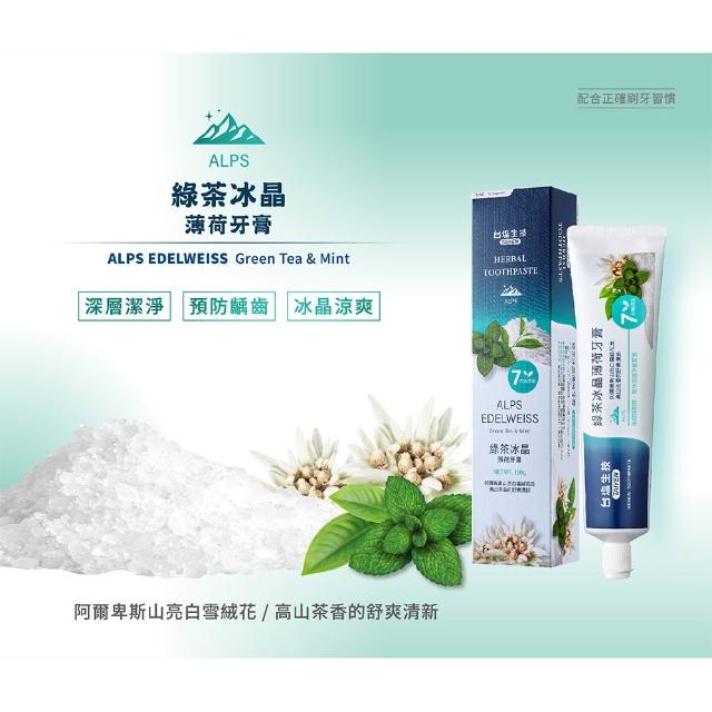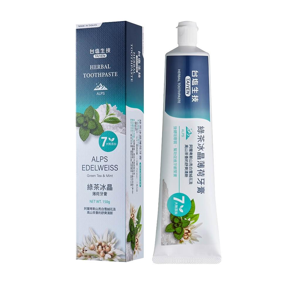 台鹽綠茶冰晶薄荷牙膏150g|阿爾卑斯山亮白雪絨花+綠茶萃取|Holdmego