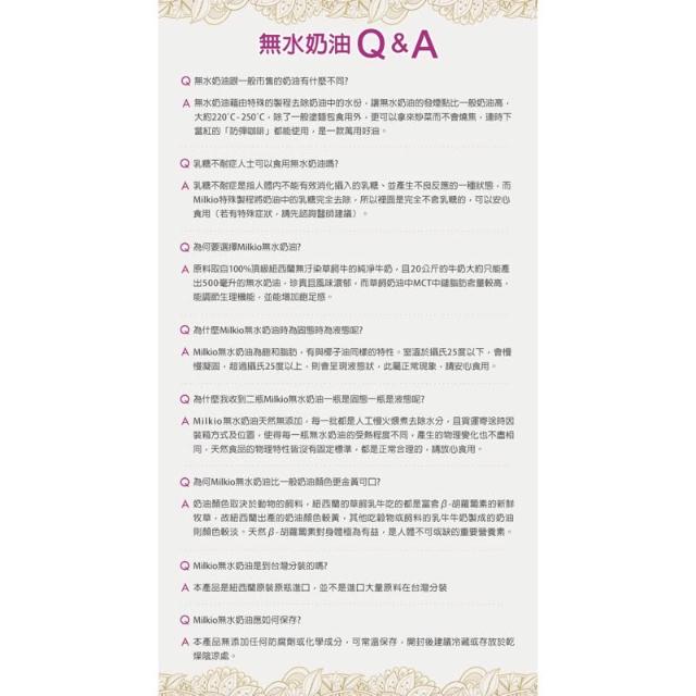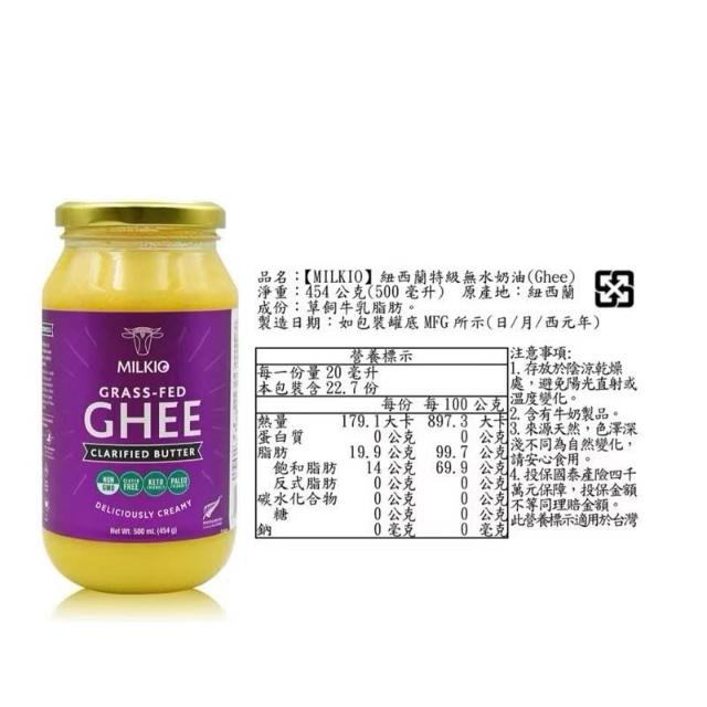 MILKIO2027新貨 紐西蘭 Milkio Ghee 無水奶油 酥油 防彈咖啡 500ml*2瓶
