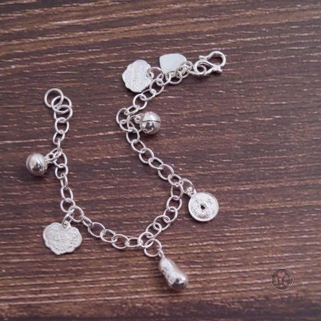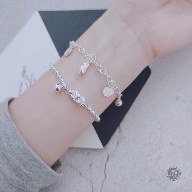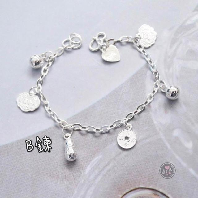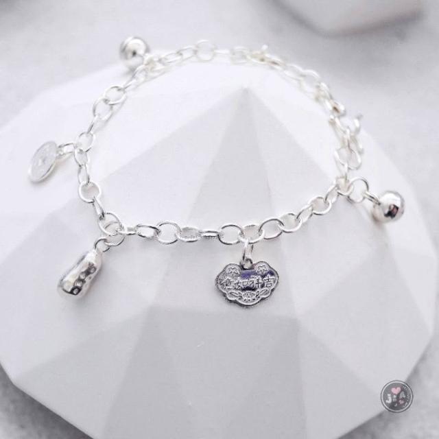 「Jia's」925純銀手鍊 《親子》出入平安 如意鎖片 五寶 鈴鐺 小孩 寶寶 兒童純銀手鍊 長命富貴