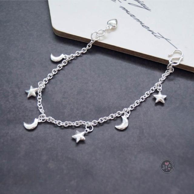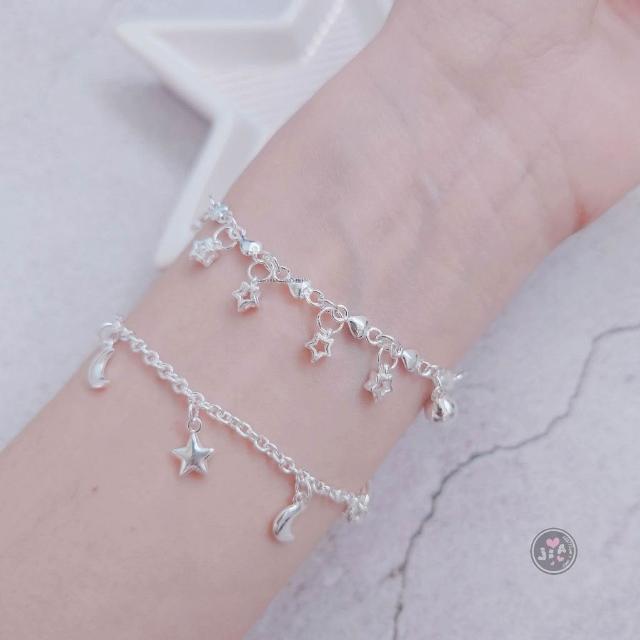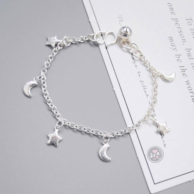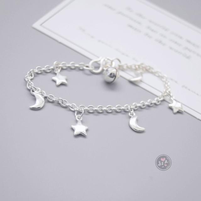 「Jia's」星星 月亮 弦月 鈴鐺 吊飾 《小孩》純銀手鍊 兒童純銀手鍊S925