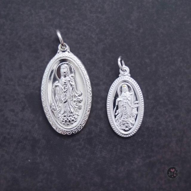 「Jia's」觀音 菩薩 背面刻 心經 橢圓 滴水觀音 觀音子 純銀單墜 項鍊墜 吊飾S925