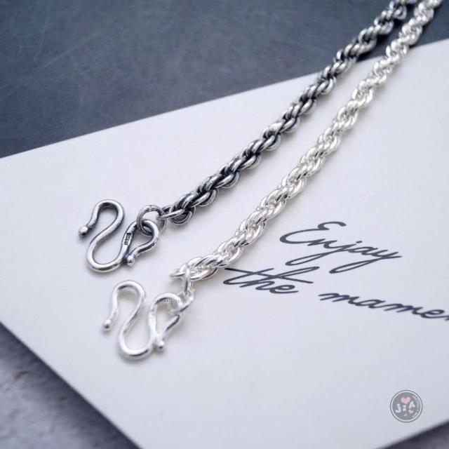「Jia's」重銀 注黑/銀白 麻花 中性4/5/6mm 粗鍊 20/22/24/26吋 925純銀項鍊 粗項鍊 S925