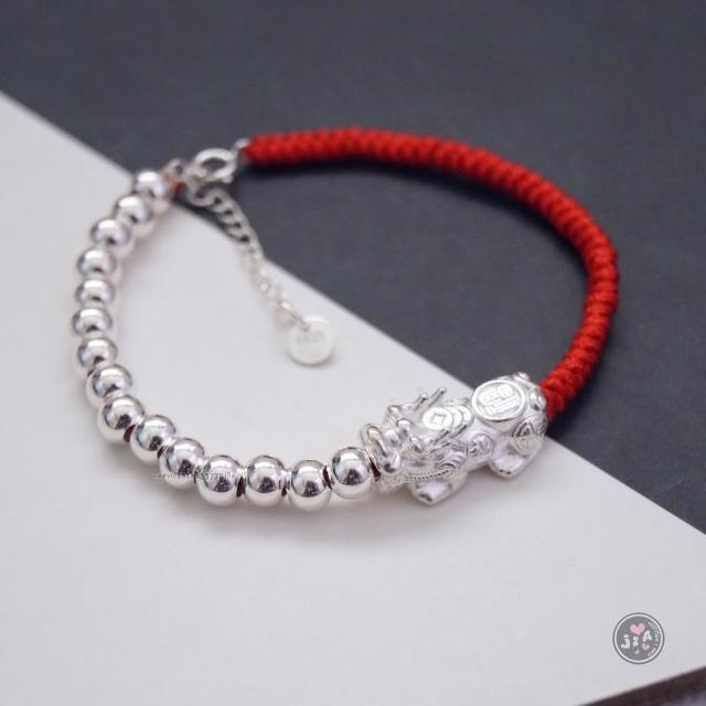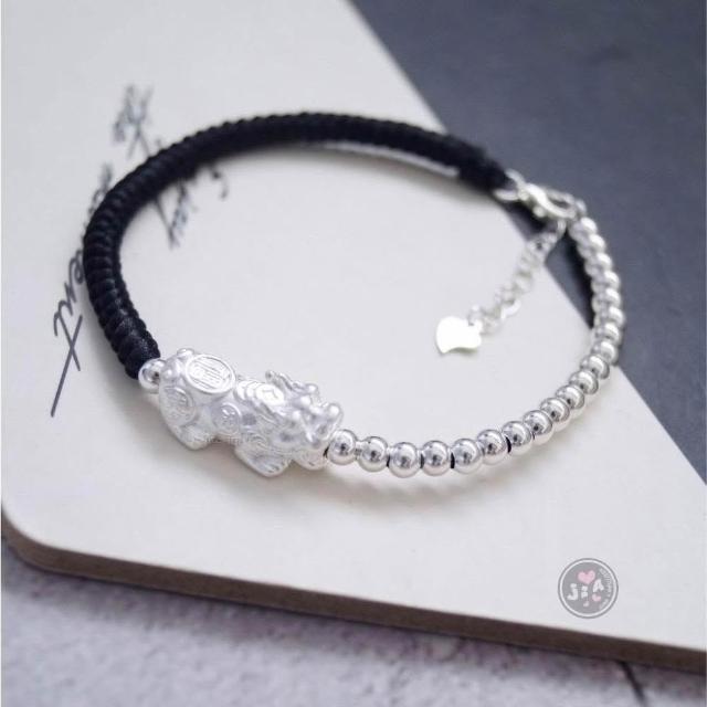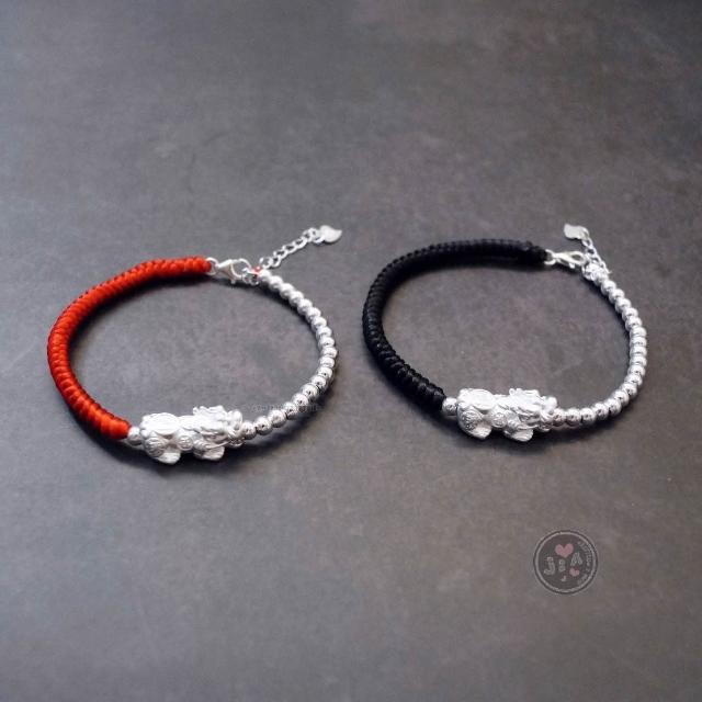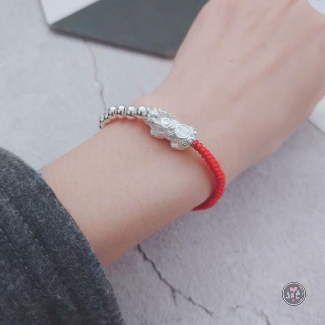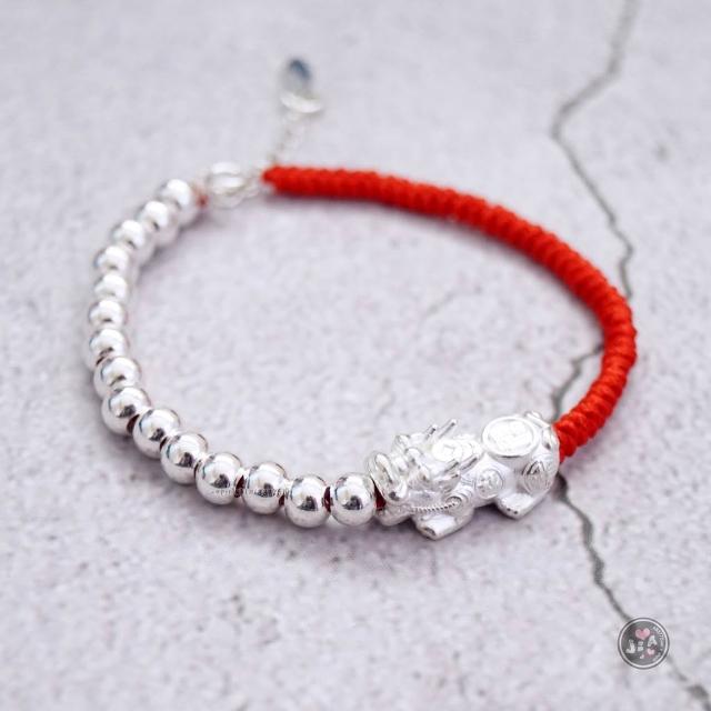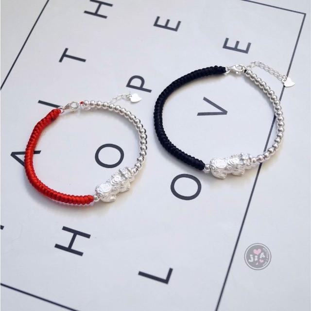 「Jia's」貔貅 招財 光珠 紅繩 黑繩 純銀手鍊 純銀S925。足銀999