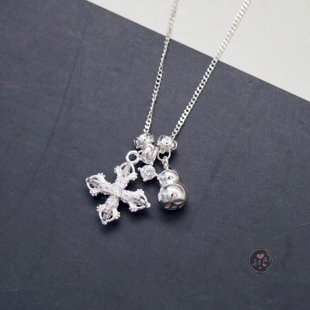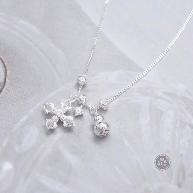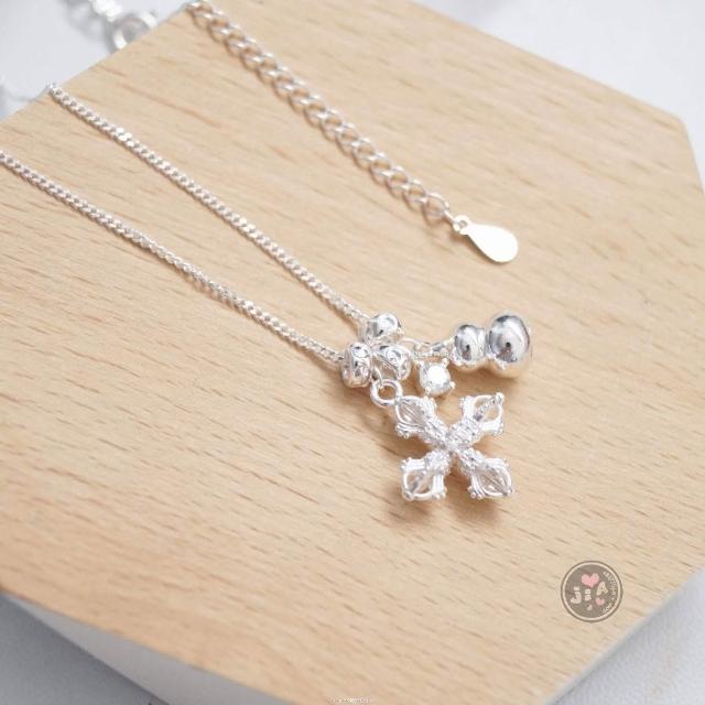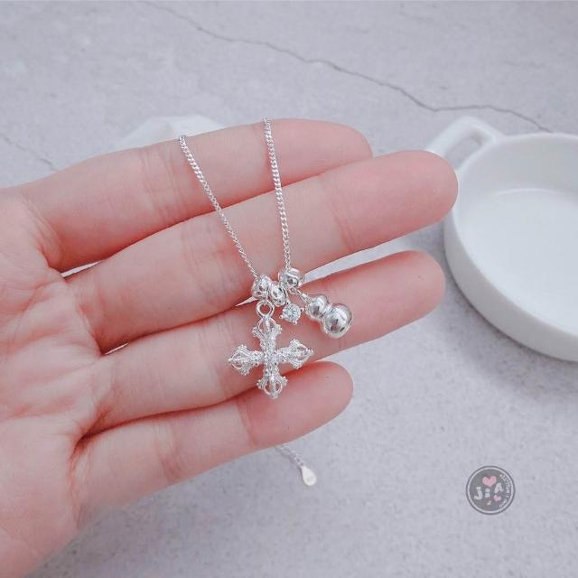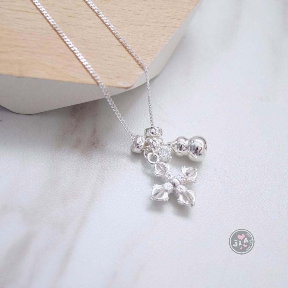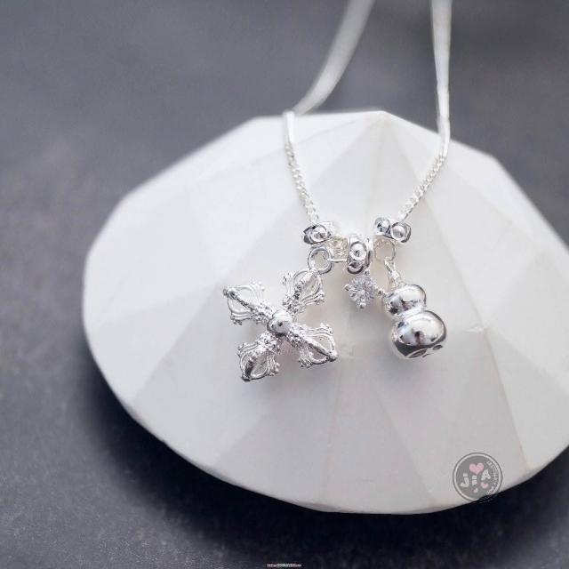 「Jia's」十字 金剛杵 單鑽鋯石 葫蘆 圈圈 純銀項鍊 純銀套鍊S925。