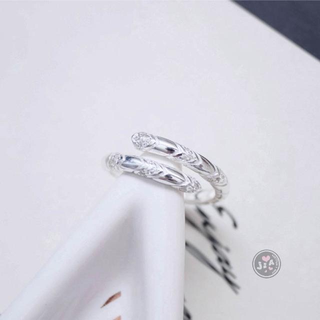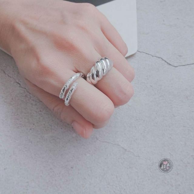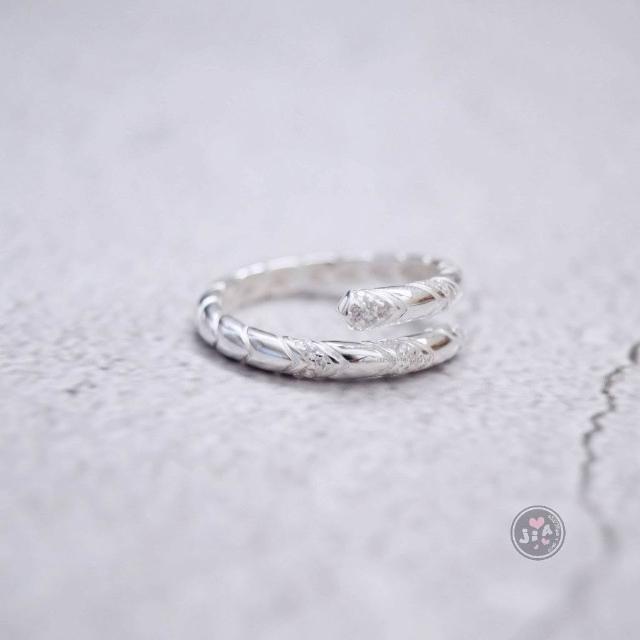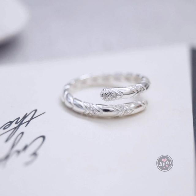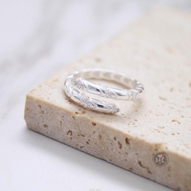 「Jia's」點鑽 鋯石 交錯 麻花 可調戒 開口戒 純銀戒指 S925。