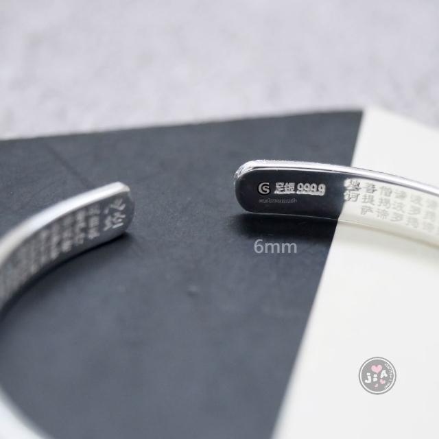 「Jia's」磨砂 直條 6/7/8mm 內刻心經 純銀手環 足銀手鐲 足銀999.9