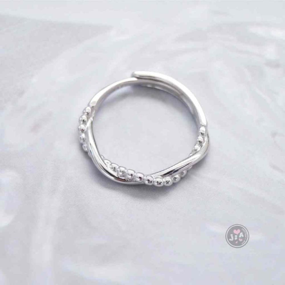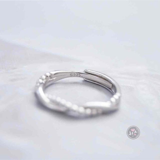 「Jia's」扭轉 麻花 交錯 純銀戒指 純銀可調戒 S925。