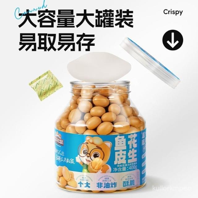 林林精選 三衹鬆鼠魚皮花生400g/罐裝老式脆皮花生米下酒炒貨懷舊小零食