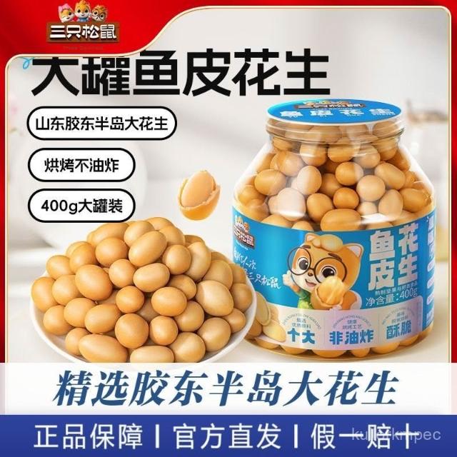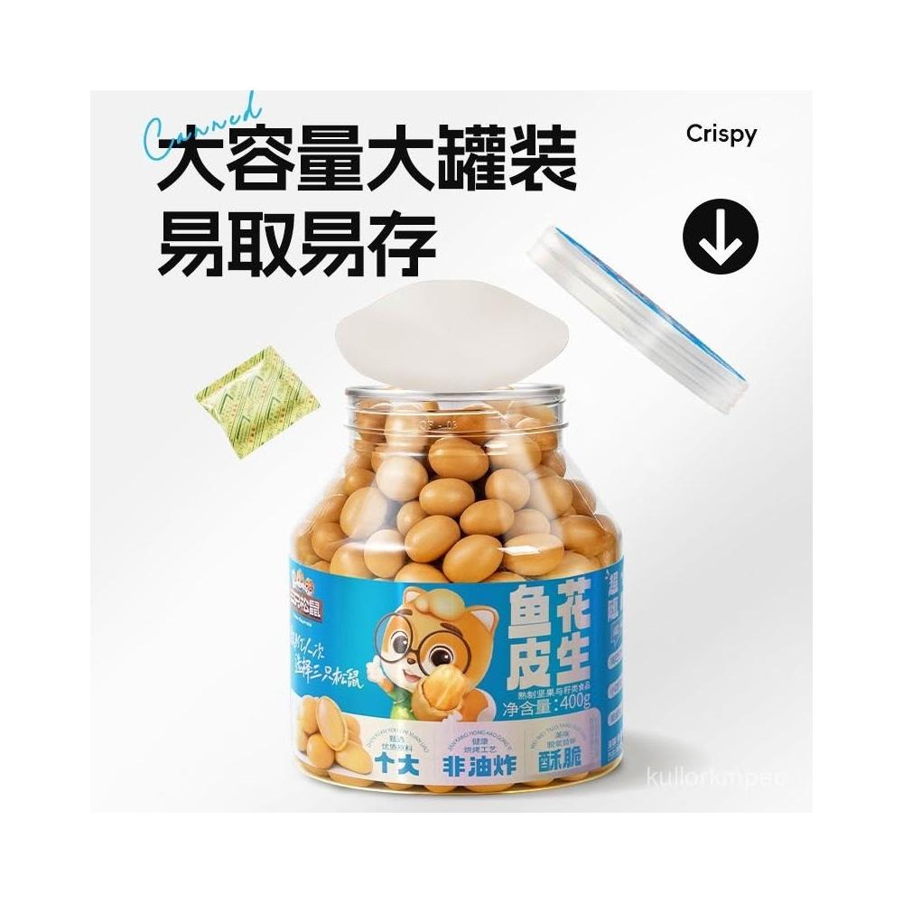 林林精選 三衹鬆鼠魚皮花生400g/罐裝老式脆皮花生米下酒炒貨懷舊小零食