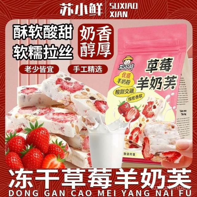 林林精選 蘇小鮮草莓羊奶芙棉花糖雪花酥糕點凍幹草莓藍莓芒果奶香零食125g